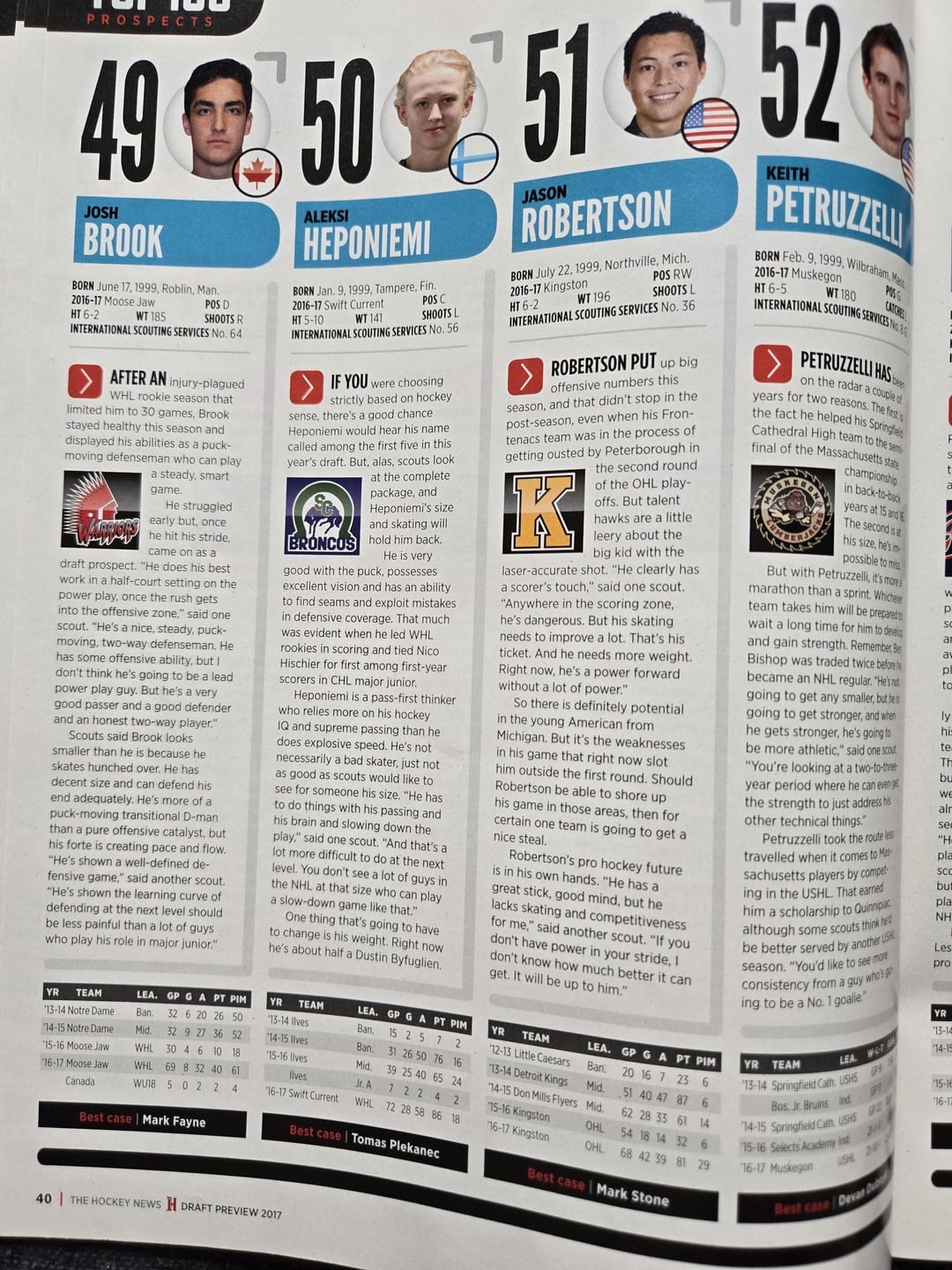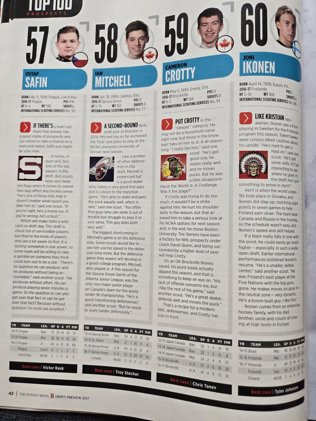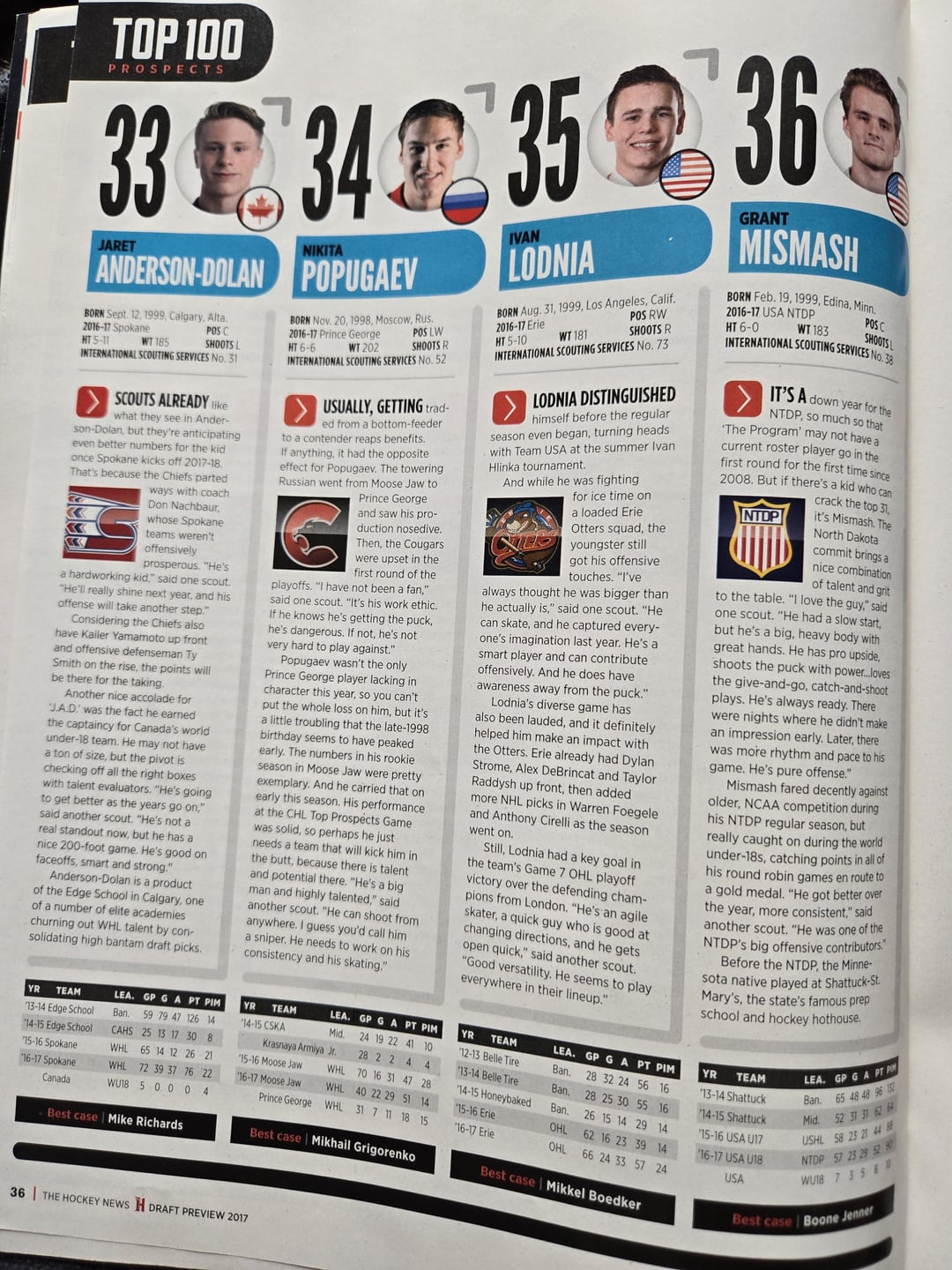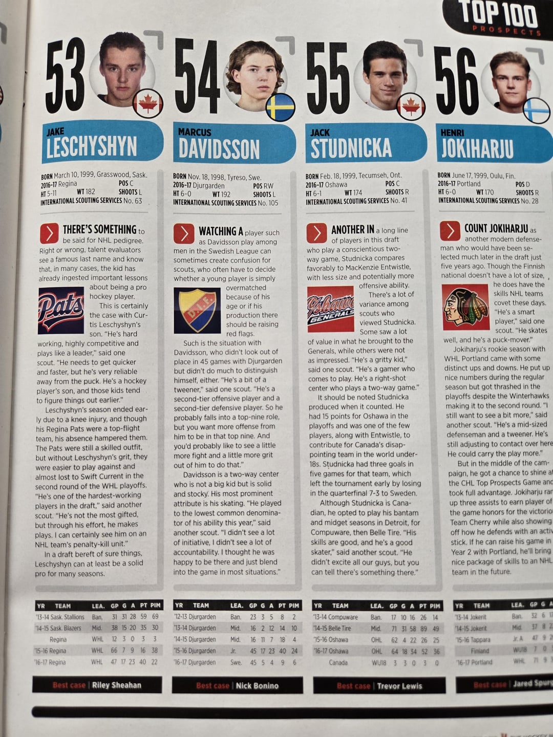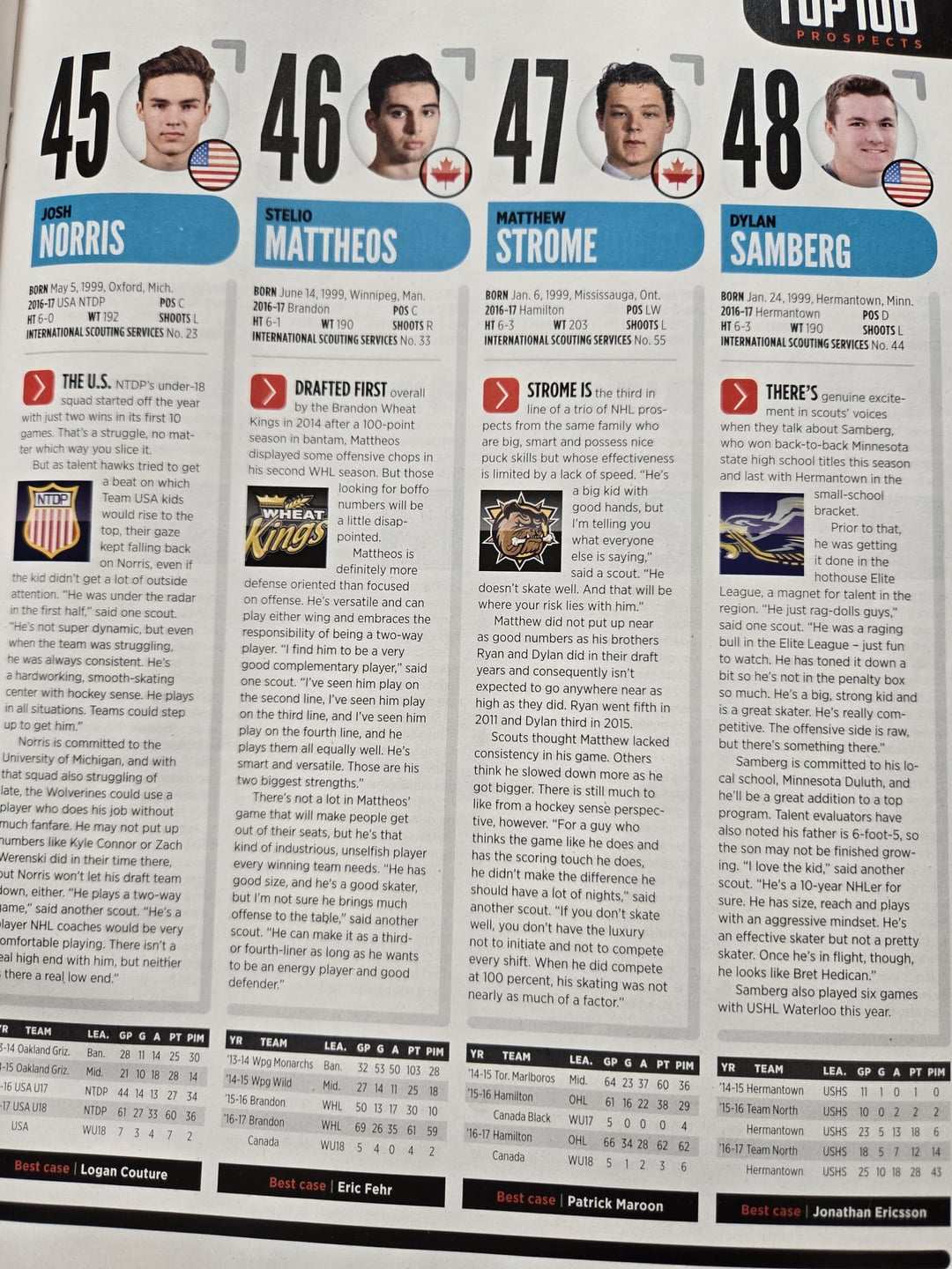 One of the few times THN missed on the first overall pick, having Nolan Patrick first instead of Hischier.