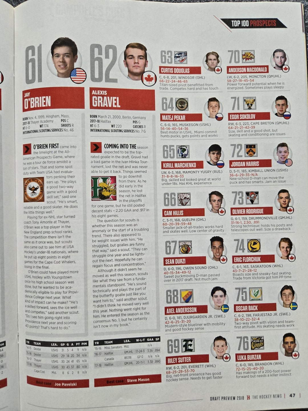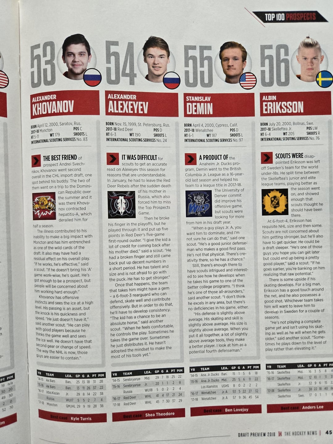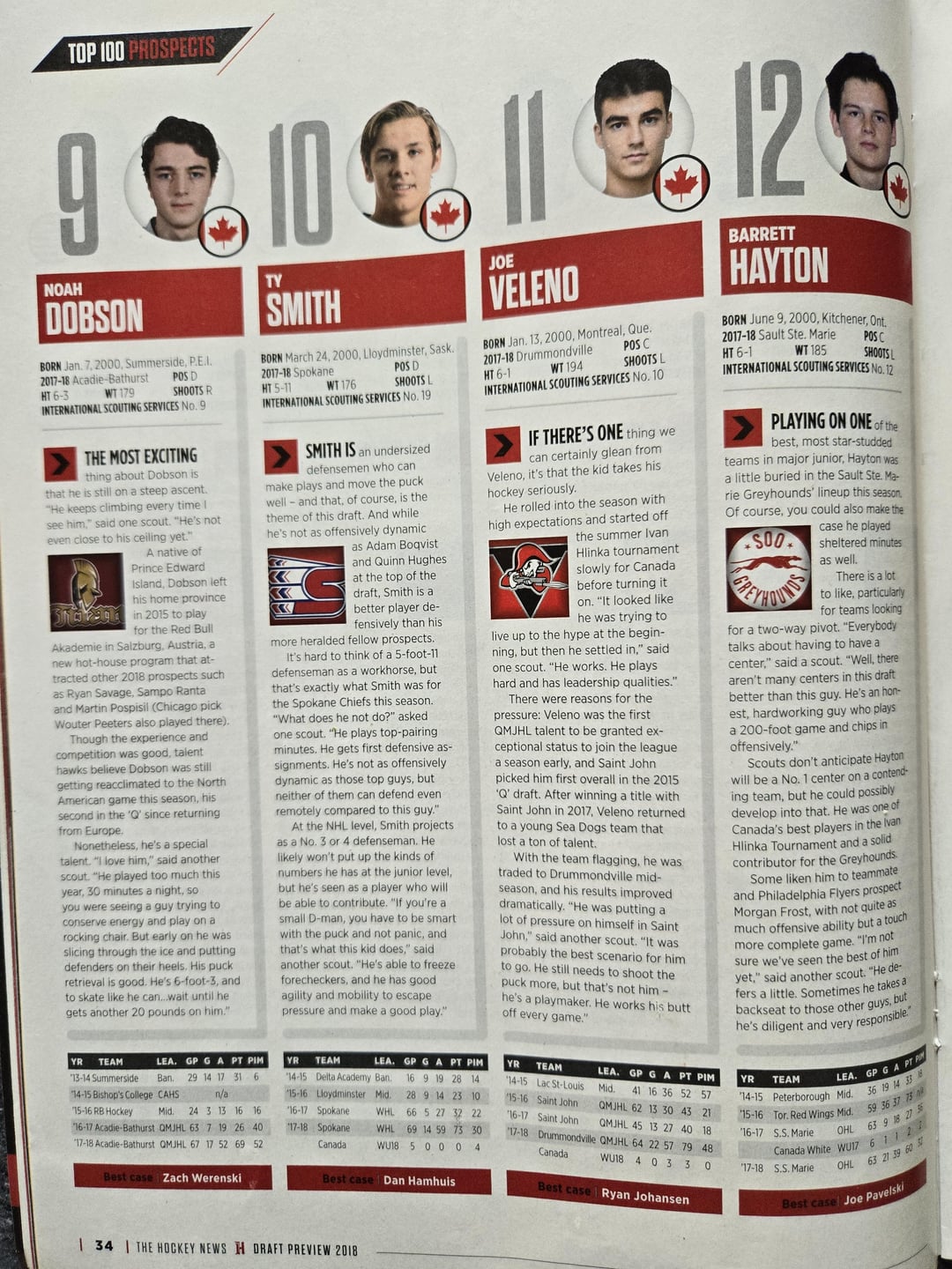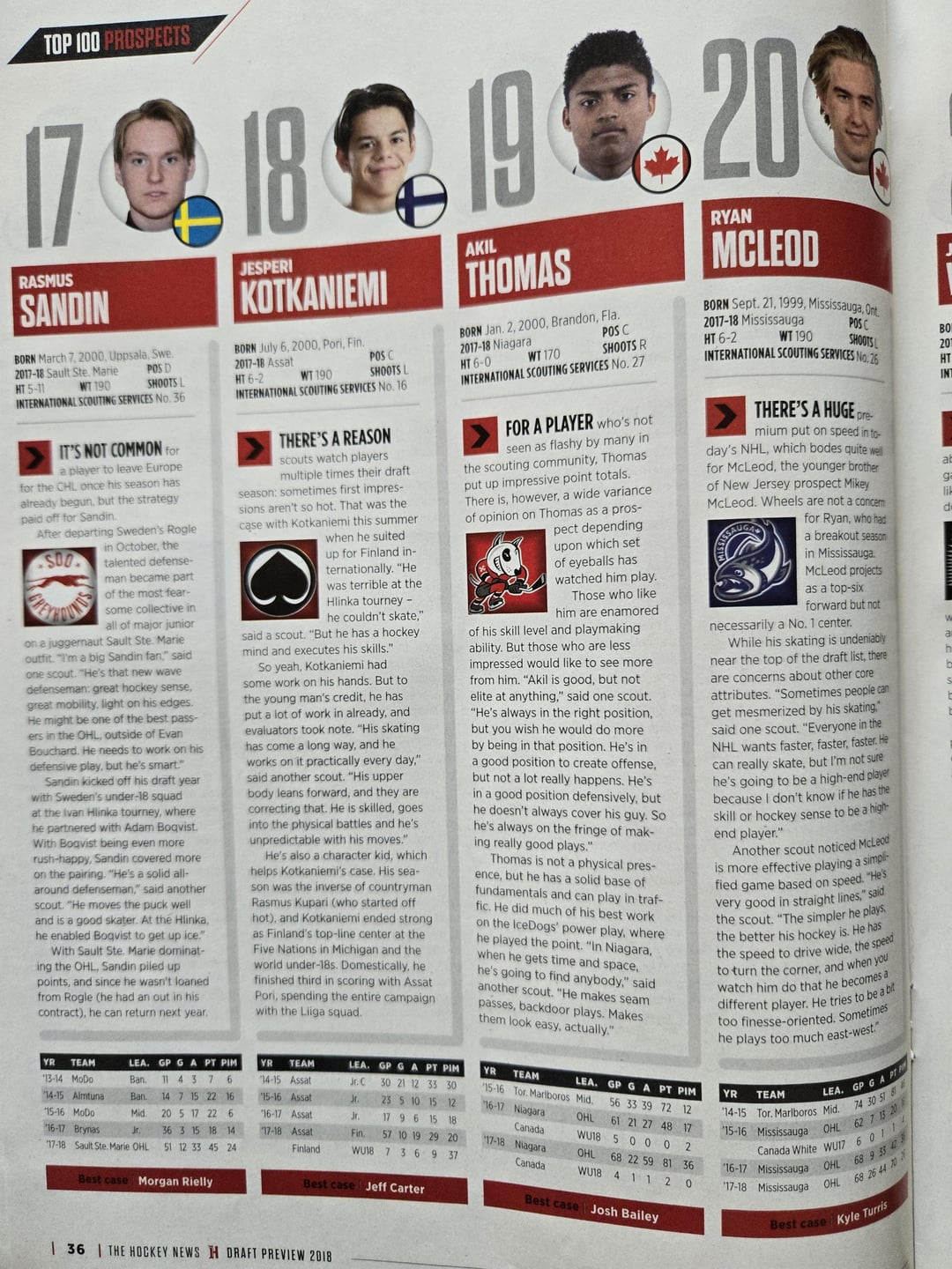 Some of the best D in the league came from this draft. Looking back, as prospects, I think Bouchard/Hughes/Dobson should have been put with the first group with Tkachuk/Svechnikov.