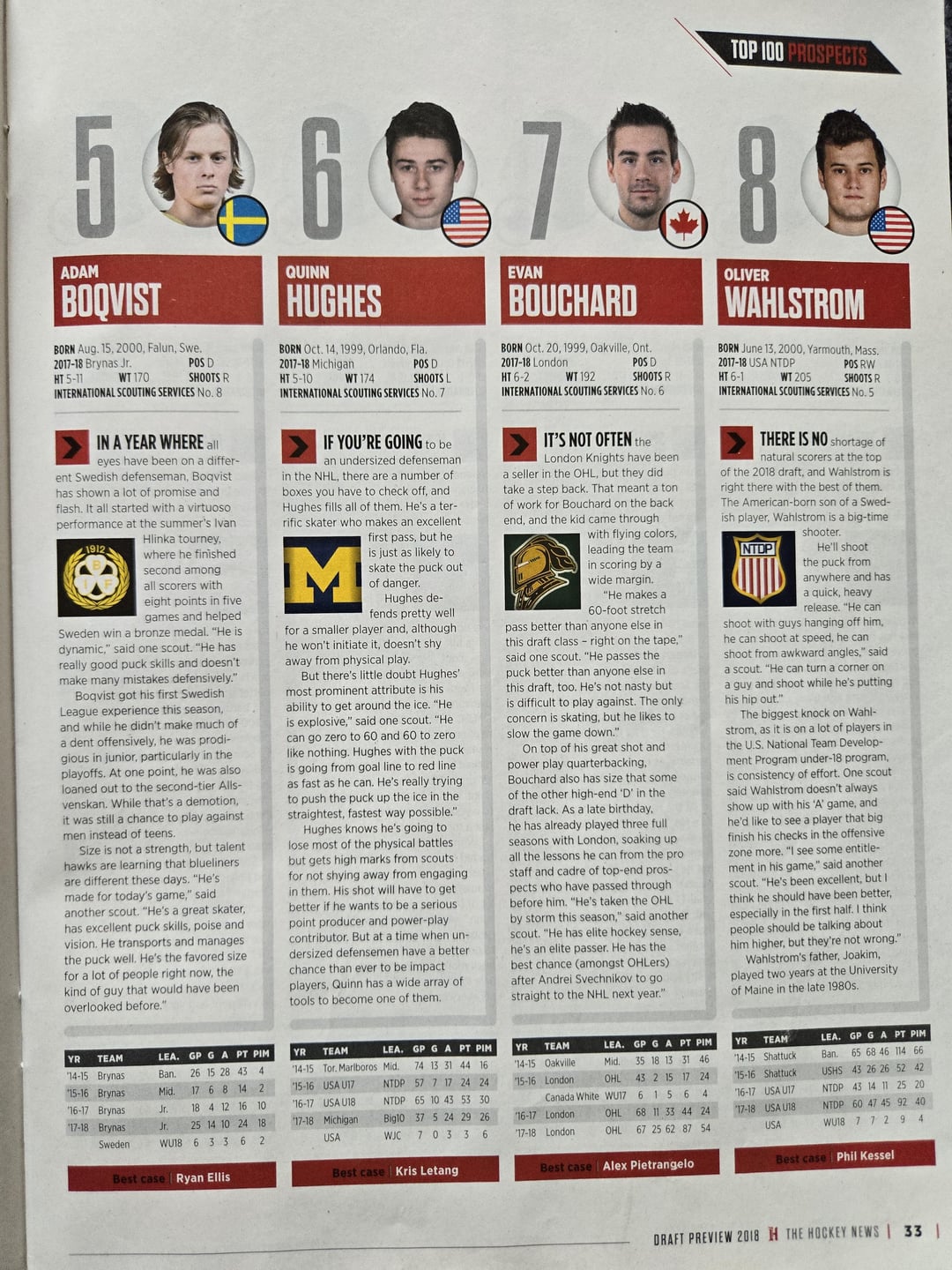 They nailed it with Dahlin, the Hughes vs. Boqvist comparison seems pretty laughable at this point though.