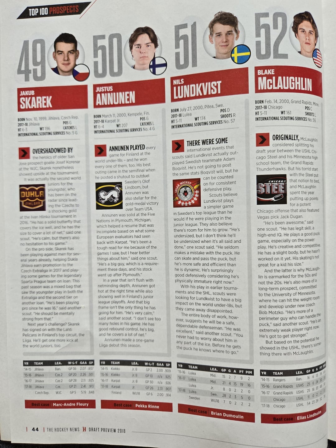 Crazy how this was released a couple weeks before the draft and they had Kotkaniemi at 18 and he went 3rd overall