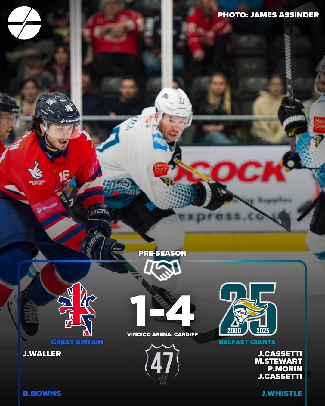 Northern Ireland’s Belfast Giants defeat Great Britain’s national team among other UK pre-season results!