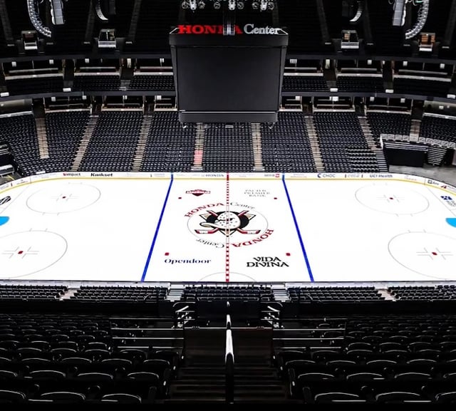 New Center Ice Logo at Honda Center 7 comments That’s such a clean look. So happy they moved on from the duck foot. Careful you don’t get fired for sharing this The 10th centre ice design in team history. See the other ones here: [https://twitter.com/AnaDucksHistory/status/1831814913511379146](https://twitter.com/AnaDucksHistory/status/1831814913511379146) finally, all is right in the world [better quality](https://i.imgur.com/CT6BSmL.jpeg) close up provided by the ducks instagram really liking how the red line is outlined around the logo. previously was a solid red line all across, essentially splitting the logo into halves We had some banger looks locked away in storage for decades I’m thinking they should’ve gone with dual logos so that the eye doesn’t have the center ice line slicing through it Leave a ReplyYou must be logged in to post a comment.