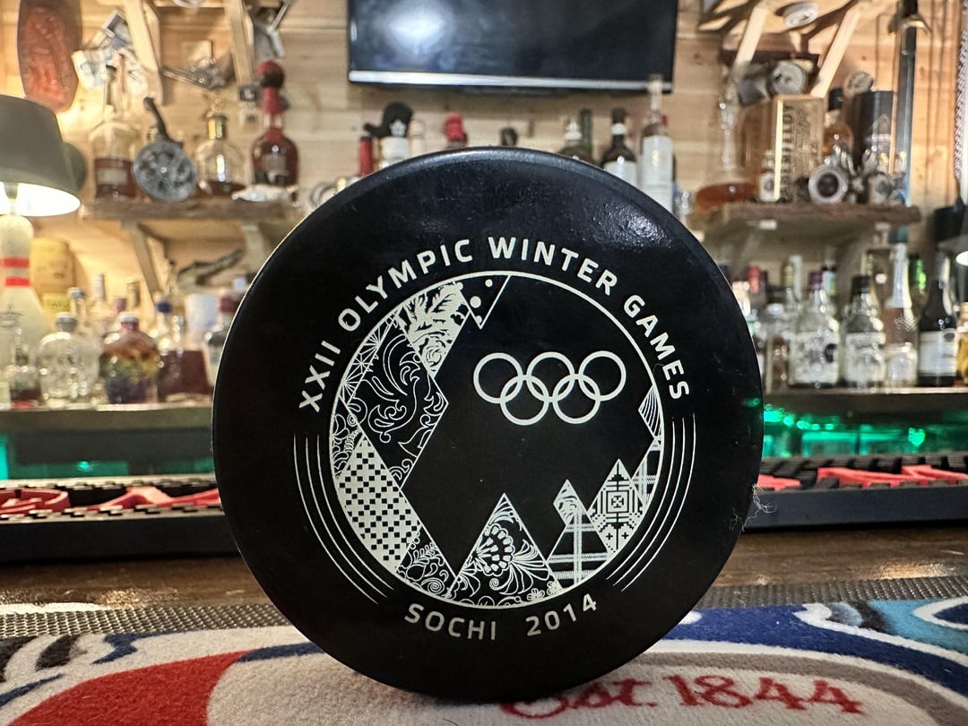 Looks legit [https://www.gettyimages.com/detail/news-photo/view-of-the-gold-medal-match-puck-during-the-mens-ice-news-photo/474386243?searchscope=image%2Cfilm](https://www.gettyimages.com/detail/news-photo/view-of-the-gold-medal-match-puck-during-the-mens-ice-news-photo/474386243?searchscope=image%2Cfilm)