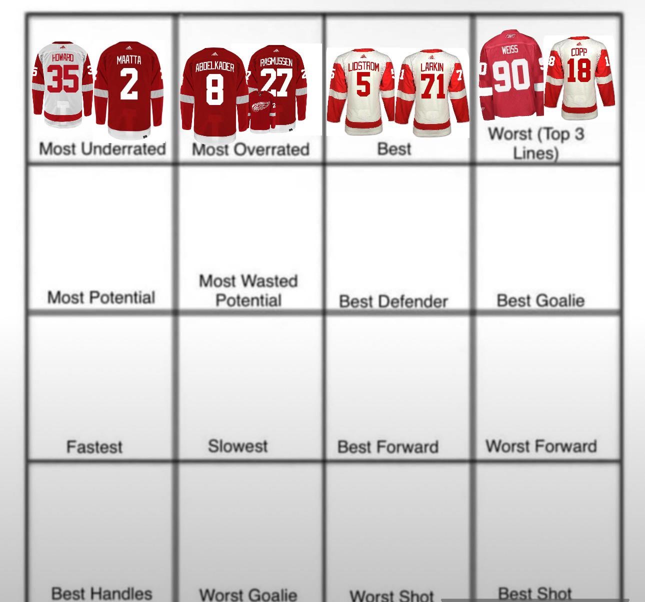 Btw, I’d much rather do one roster player for potential and one future player, doing “all time most potential” feels weird, and current would essentially just boil down to Seider vs Raymond. Again, if you guys REALLY want to put an all timer I’ll do it though, any suggestions for the grid (topic changes, graphic changes etc.) I read pretty much all comments