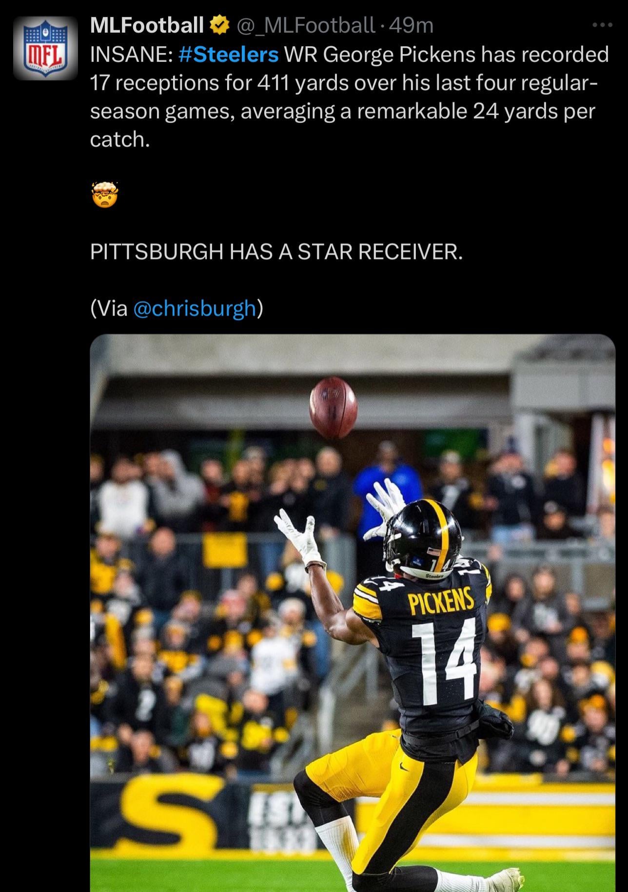 “Pickens picks it out of the air and runs with it! Touchdown!”