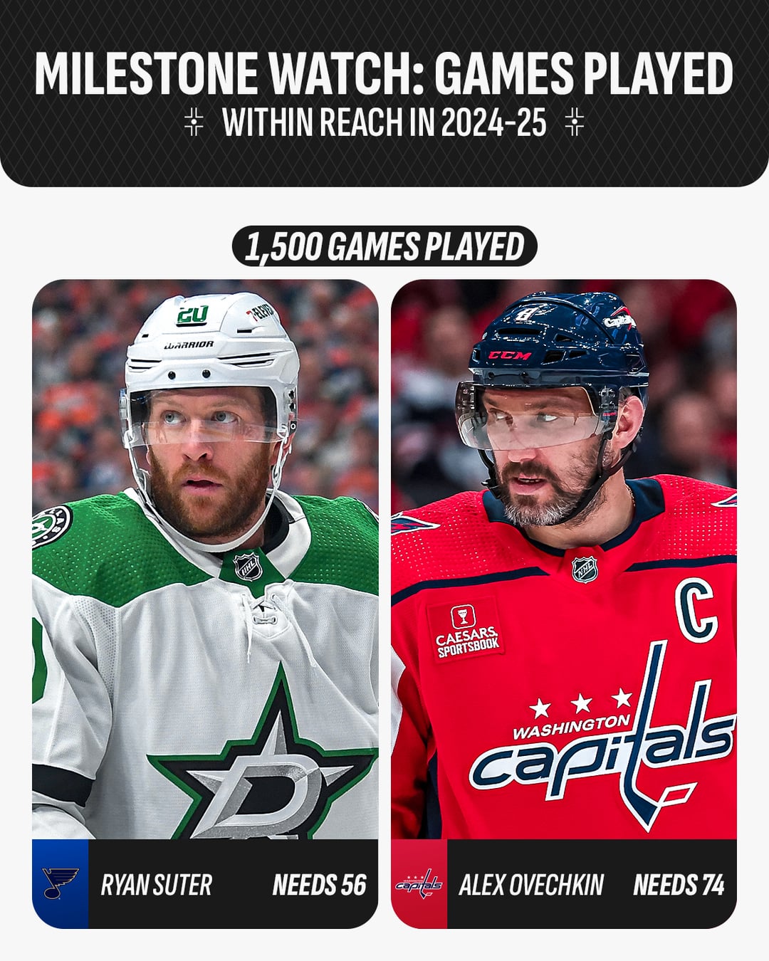 1,000 & 1,500 games played milestones within reach in 2024-25