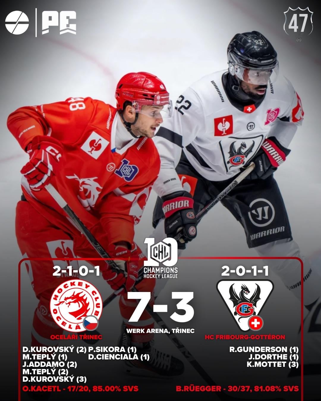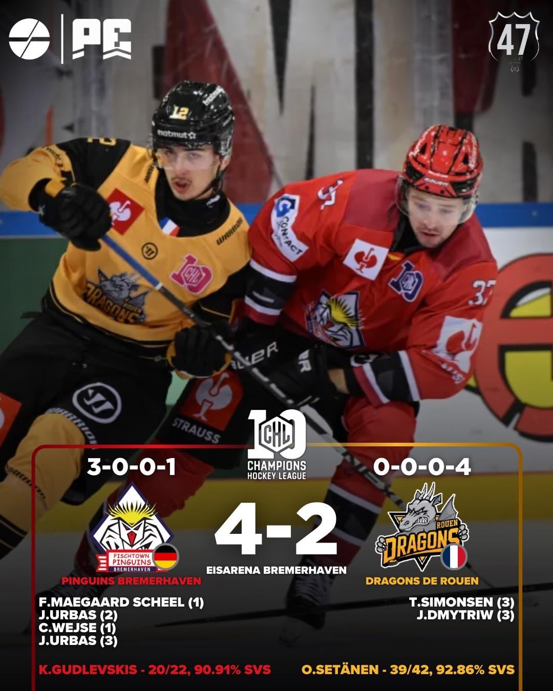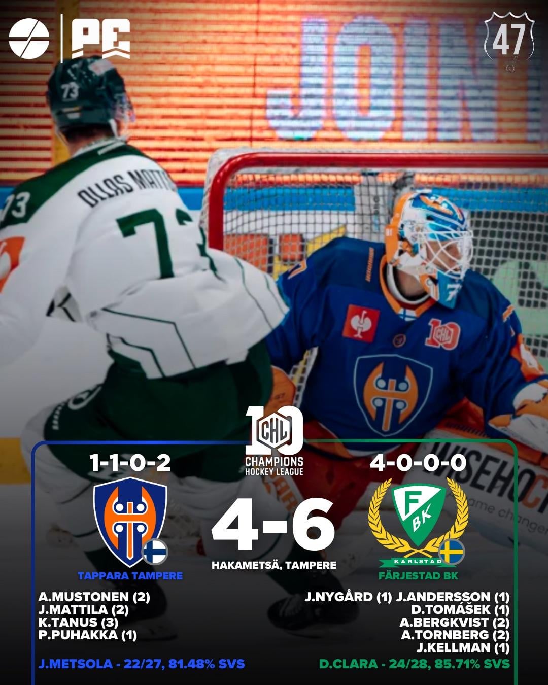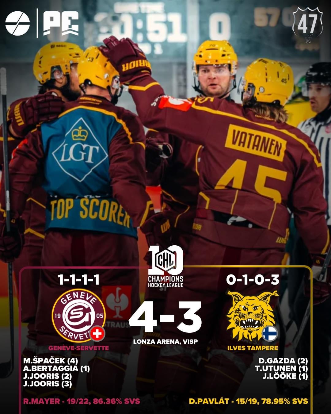 CHL 🇪🇺 tonight’s results from day 7 of the Champions hockey league
