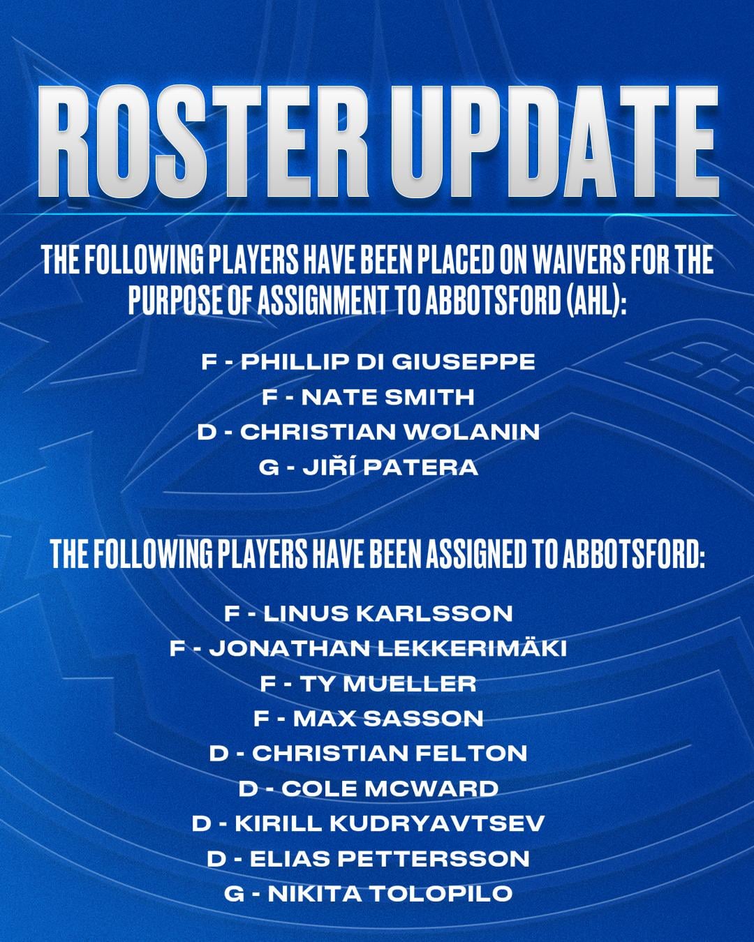 McWard being healthy enough to be assigned to Abbotsford is big given how tight the cap maneuvering will be.