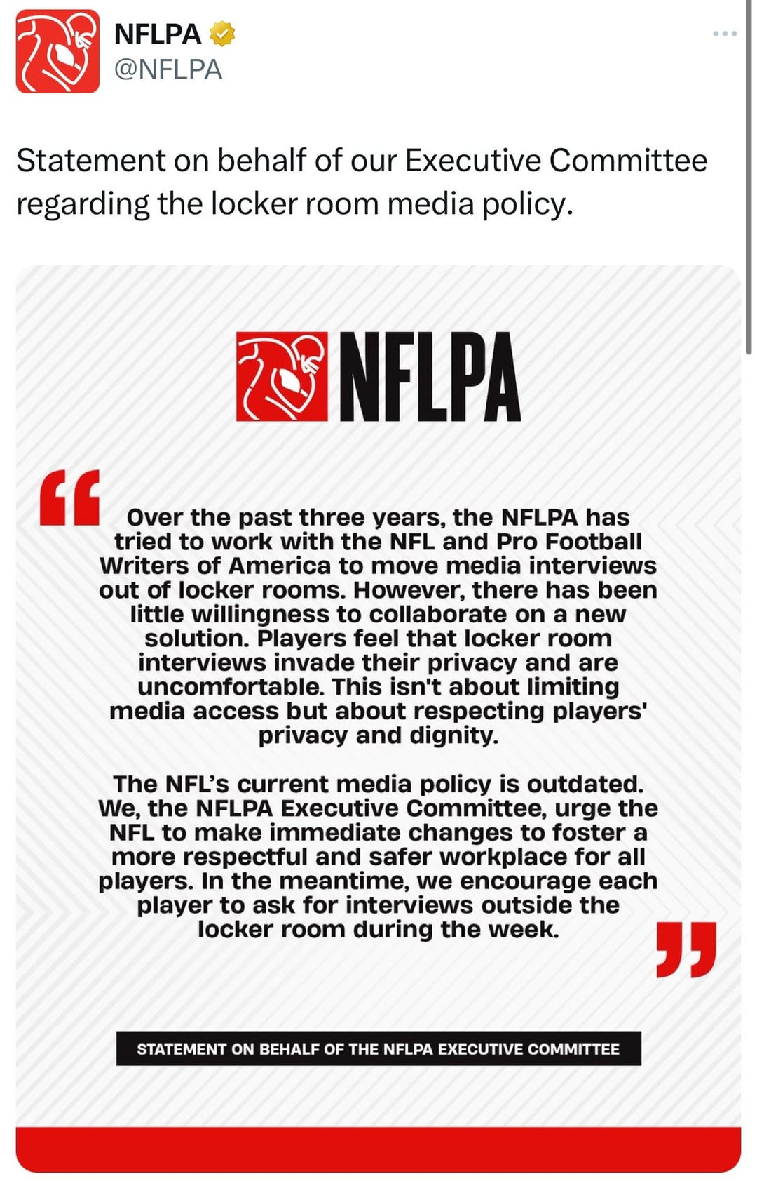 [NFLPA] Statement on behalf of our Executive Committee regarding the locker room media policy.