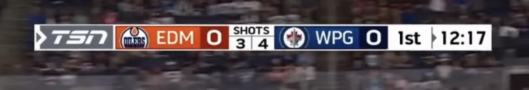 I see the SN one way too much as a Blue Jays fan in baseball, it’s bad. Shot counter is a plus but it’s way too simple and the SN logo takes up a ton of space for no reason, and in conjunction no team logos is an immediate demerit in my books. It also cannot handle double digit goals, which is rare enough that it’s not a problem but it’s funny when it does happen, because the “10” just runs off the edge of it slightly (see TOR 10-goal game from last season).