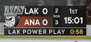 Turner meanwhile lists the Kings as **LAK.** This just irritates me as unnecessary filter just used to hide empty space in the bug, instead of centering the two-code abbreviations like ESPN does to theirs. Also irritates me seeing other teams on Turner being called **SJS,** **TBL,** or **NJD;** clubs with two-code abbreviations for their city name but are also thrown their club’s first letter also on the bug.