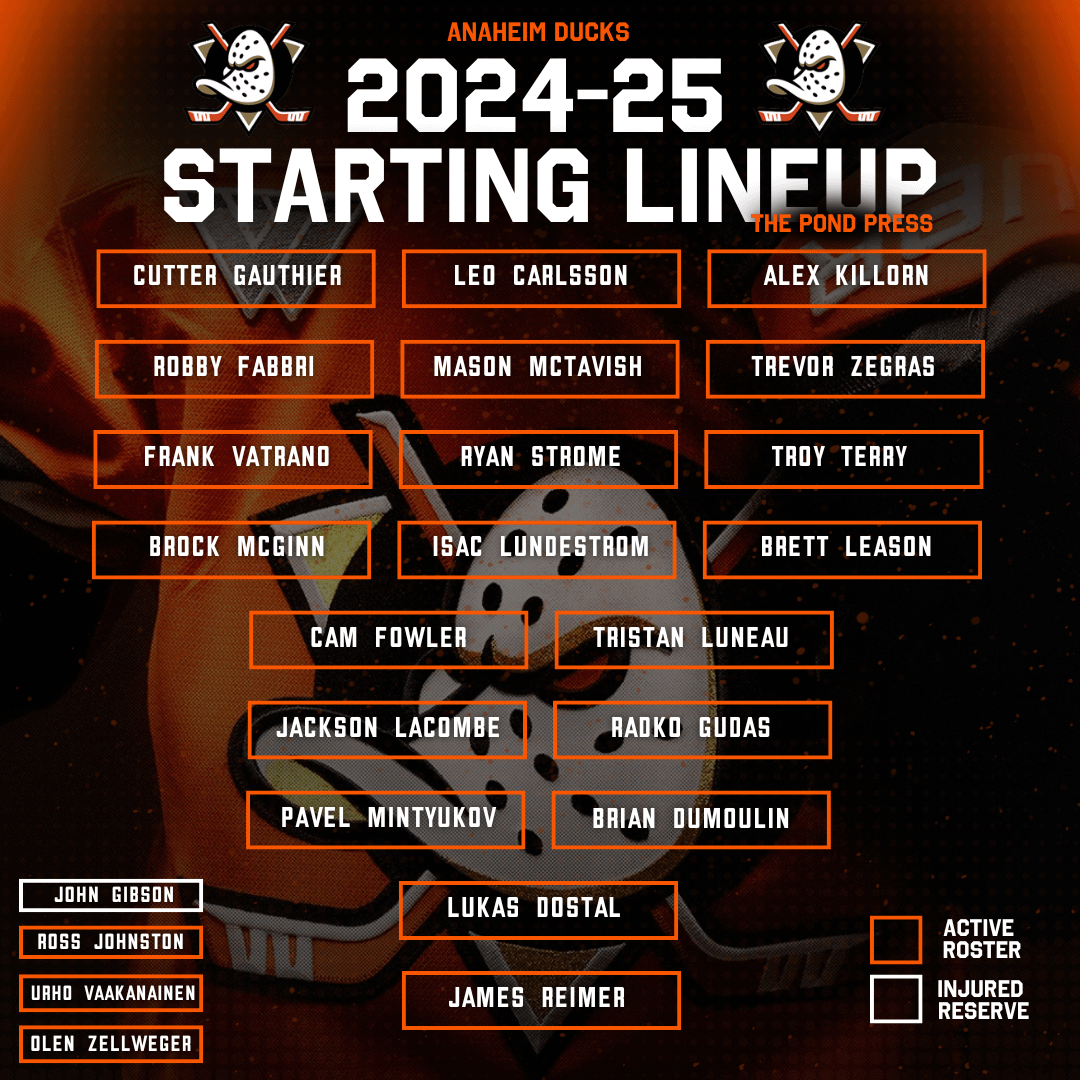 Ducks Starting Lineup @ThePondPress on Instagram for MORE DUCKS CONTENT 7 comments [https://www.instagram.com/thepondpress/](https://www.instagram.com/thepondpress/) I love it. Troy being spread out to create more scoring. If he has no ego, this could be great. Best line up we’ve had in years. Think we can get to 80 points this year and be competitive. How do we always feel 2-3 players short Needs more Carlsson’s After injuries, that third line will be the second a few weeks in. Move Killorn down a few lines and swap Lacombe and Minty. Leave a ReplyYou must be logged in to post a comment.