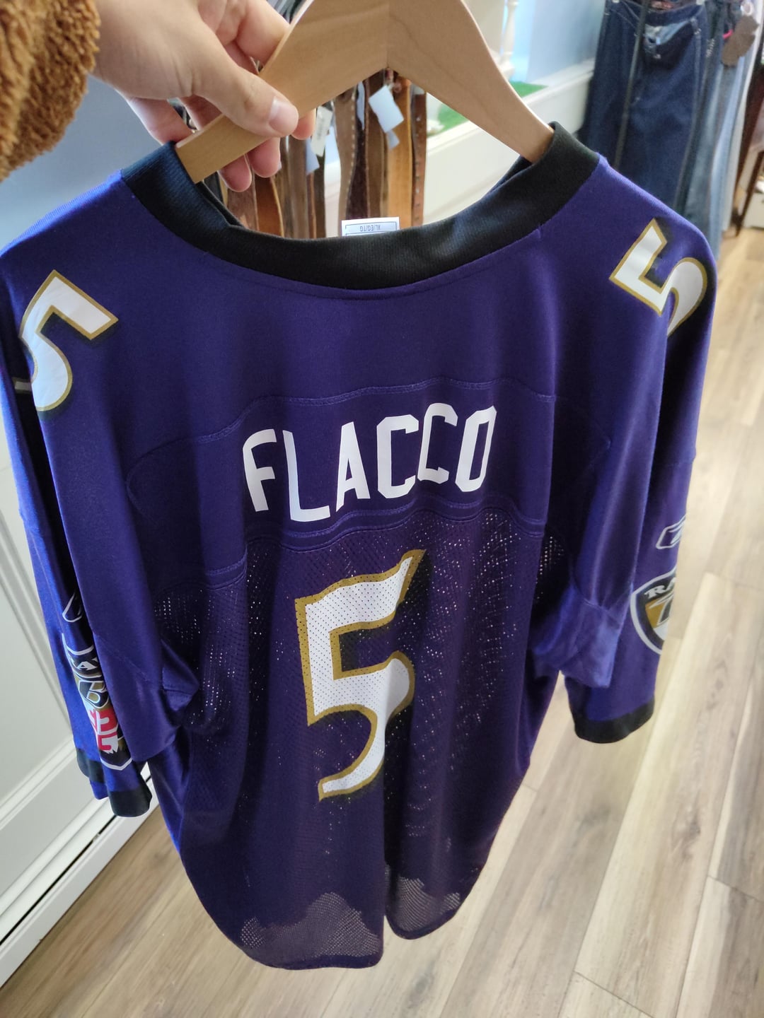 You can get this XL Flacco Jersey at The Attic Cambridge (Bow St & Massachusetts Ave) vontage clothing store for $37. It's in good condition, just unfortunately too big for me, otherwise I would've bought it.