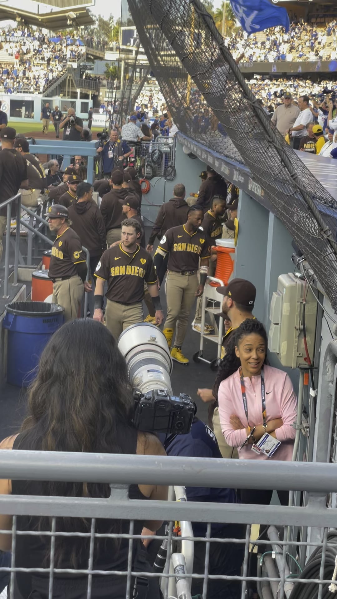 I know I’m late to post, but I was temporarily banned for 7 days for talking smack on the Dodgers thread. I didn’t know the rules. My bad. Now I do. Today is day 8 and I just wanted to share this video with the Friar Faithful. I was lucky enough to have Dugout seats for Game 5 as a birthday present from my buddy. (Dodger season ticket holder) 😂 I was the only and I mean only Padre fan in this section. It was rough, but I persevered. 2025 can’t wait!!!! Got the ✌️ up by Merrill.