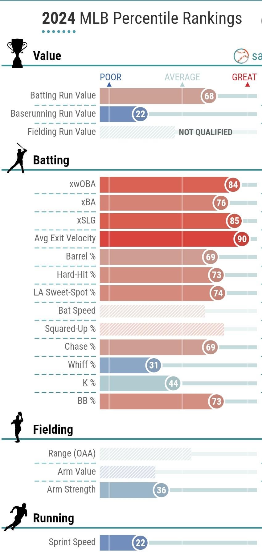 Back to a hitter today. Who owns this Statcast? 7 comments Trevor Larnach? He hit the ball hard but couldn’t run Yeah that’s Larnach. Smashes the ball but runs like a cow. Royce Lewis I could see it being Larnach but my first thought was Wallner. Not sure how many games you need to qualify in the field. Edit: Looking at it again, the arm strength is a pretty big tell that this isn’t Wallner. Larnach is probably right. Correa Wallner? Today’s answer >!Trevor Larnach!< Congrats to /u/whi_ghets for being the 1st to guess correctly! Leave a ReplyYou must be logged in to post a comment.