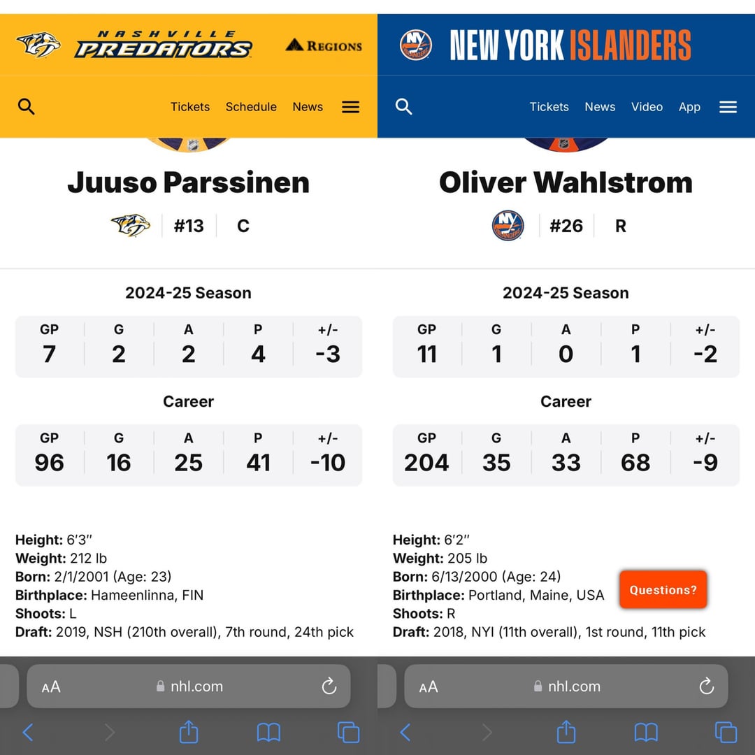 I wouldn’t trade. Wahlstrom is basically the youngest on the team and has more NHL experience than Parssinen