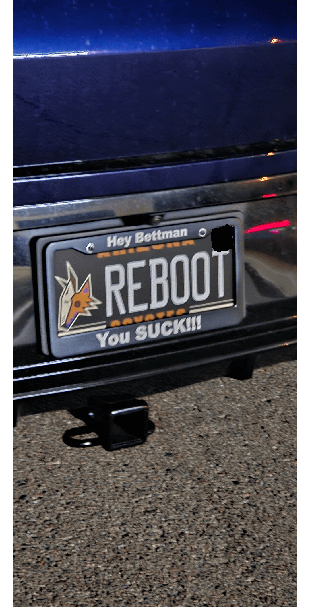 Love the plate, but the frame needs to say Meruelo, not Bettman. Hate Bettman all you want, but he stuck by the team through so much bullshit – any other commish would’ve moved them years ago.