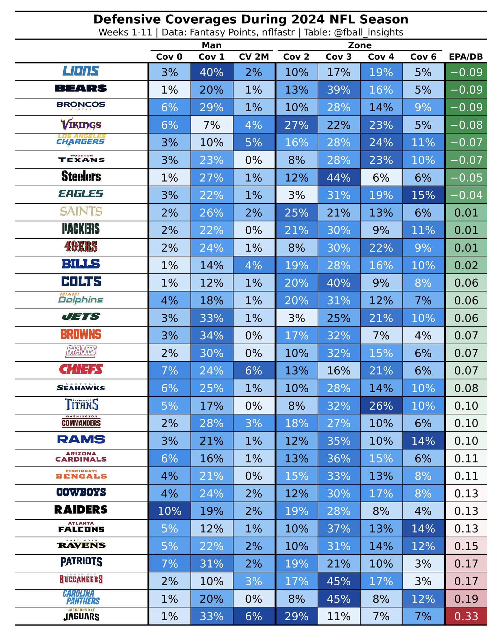 Weird that Neilsen talked about man coverage as his baby but we play <40% in man