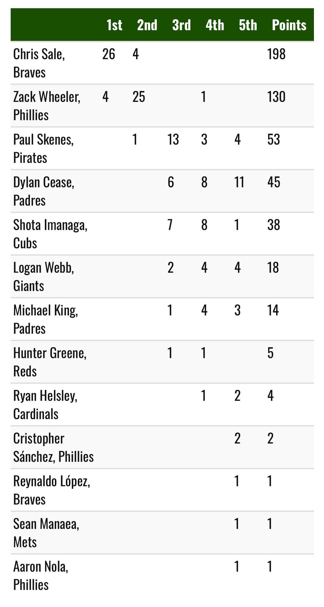 2 years in a row with a pitcher in Cy Young voting, both placing 5th too. We’ve got starts man