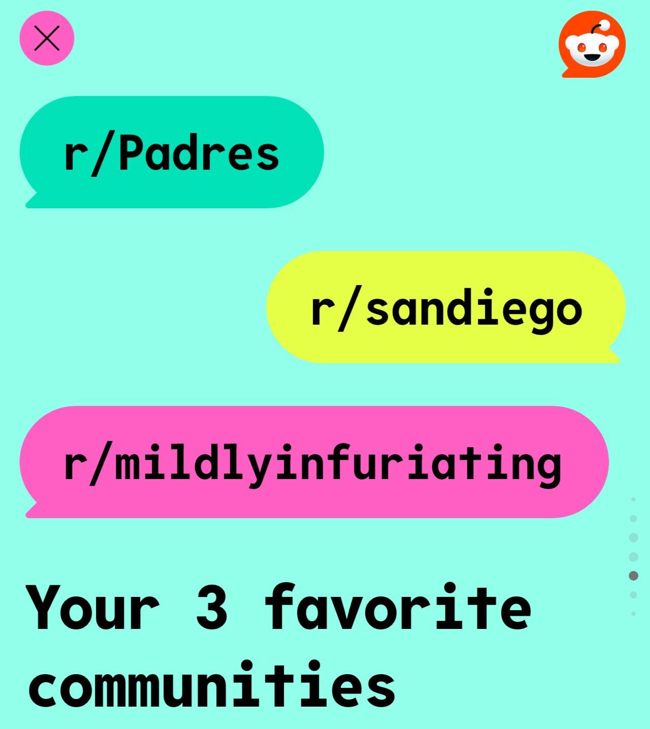 Yes. My top two subs were this and r/baseball. I love baseball. Your third sub is highly questionable. Should be r/sandiegan and not that shithole of a San Diego subreddit
