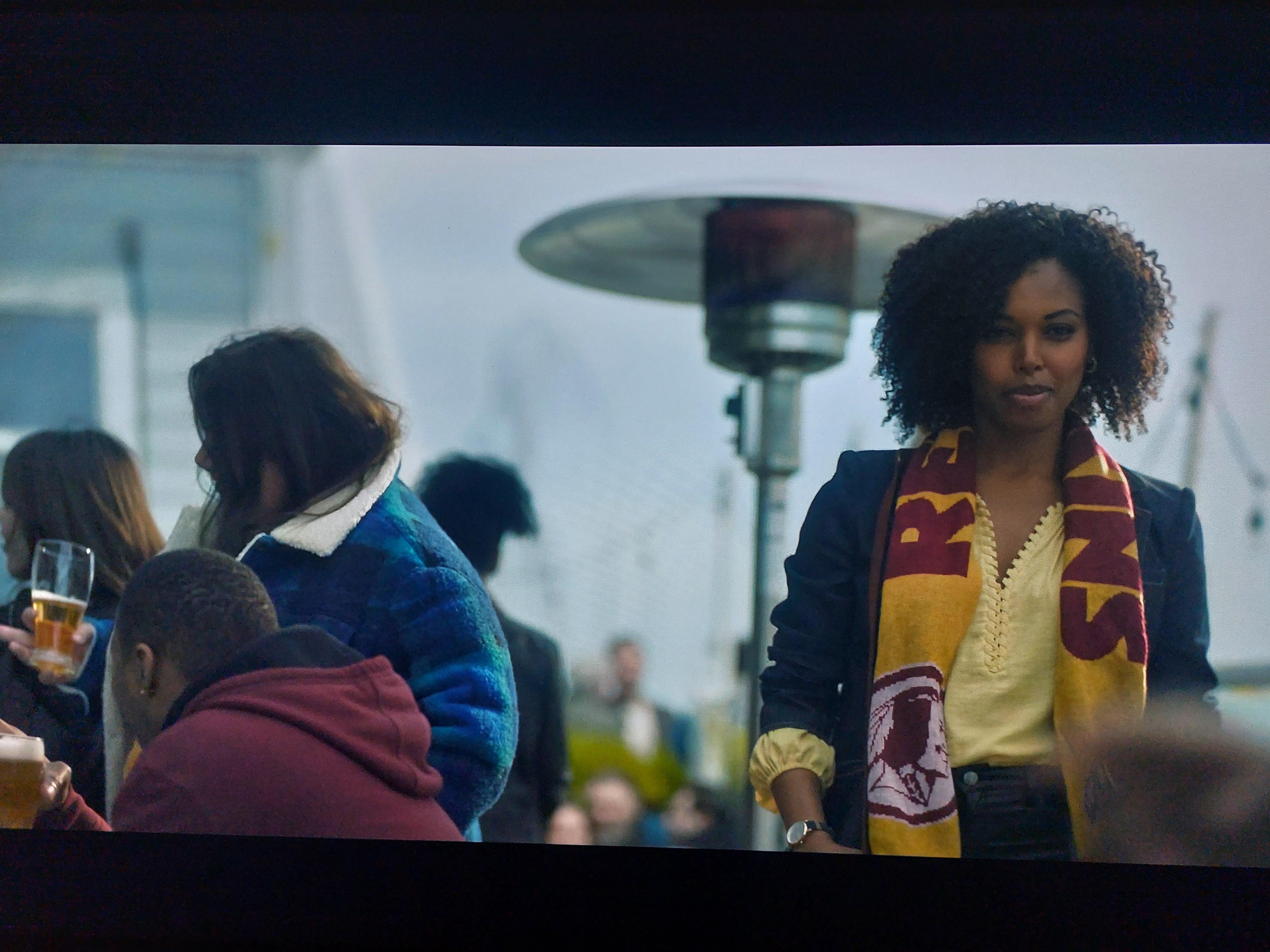 I saw that too and realized the rationale behind the old logo. The show is set in DC, and this is a flashback…pre WFT and pre Commanders. What i was NOT expecting was the scarf to be a major plot of the plot