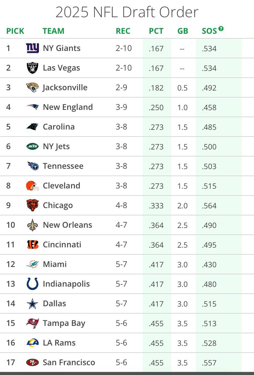 Raiders look like they are playing to lose as well at this point..Great game against chiefs today…pretty much solid game all around and botched a snap in FG range at the end of the game which they could have won…sounds about right
