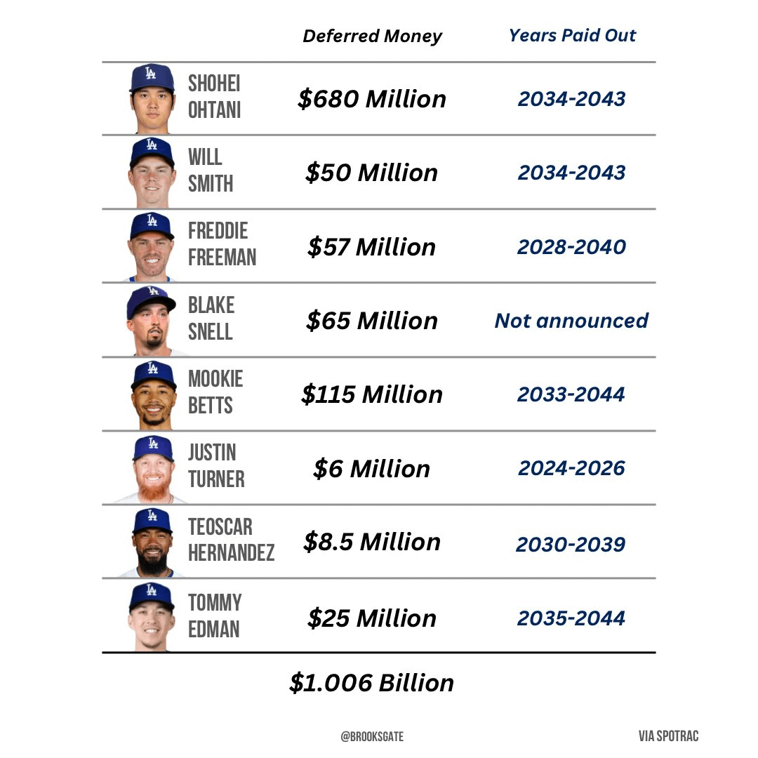 The Dodgers literally won the lottery with Ohtani. And they have the perfect owners who know how to optimize and use that windfall. No other player nets its team an extra $120M per year in revenue. If that total stands for the life of his contract, that’s potentially $1.2B of free Monopoly money. These deferments will basically be funded in 10 years. With interest earned, the Dodgers can defer even more and not blink an eye. It doesn’t really cost them anything out of their own pocket. This is why they can do this.