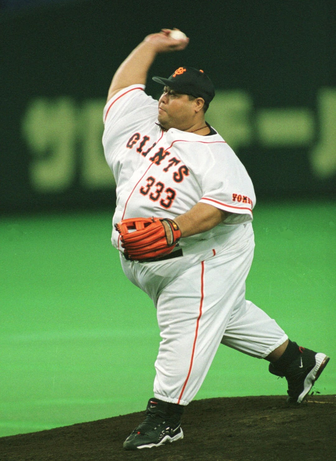 Weighing in at over 600 lbs (or approximately two William Howard Tafts), Hawaiian sumo wrestler Konishiki throws out the first pitch at the 1998 Super Dome All-Star Series in Tokyo