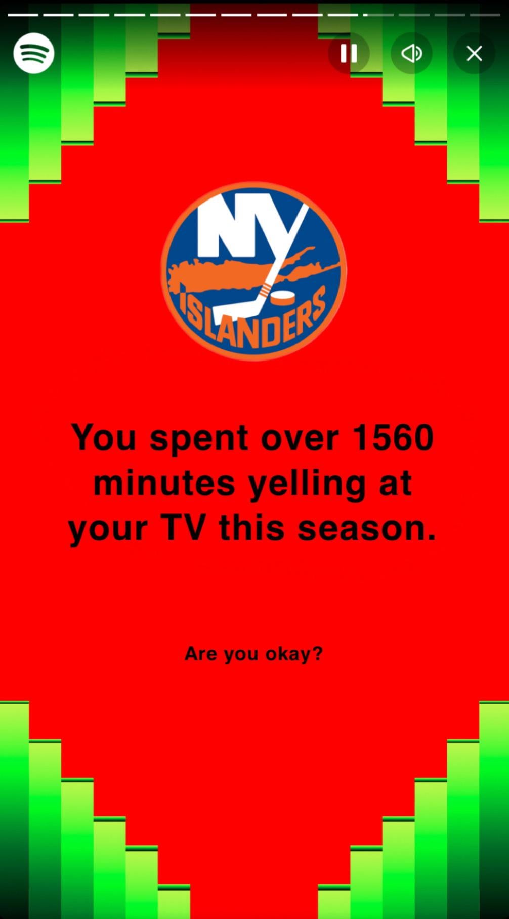 My Spotify wrapped just dropped 9 comments Finally, the only Spotify wrapped post I care about I actually lol’d. Well done. I’ve skipped alot of games this absolutely depressing season. That sounds about right!! Bill burr vibes All of those minutes were in the third period 1560 mins is 26 regulation games… but I yell in overtime too 😂 this is gold lol I’ve just stopped watching other than as background noise Leave a ReplyYou must be logged in to post a comment.