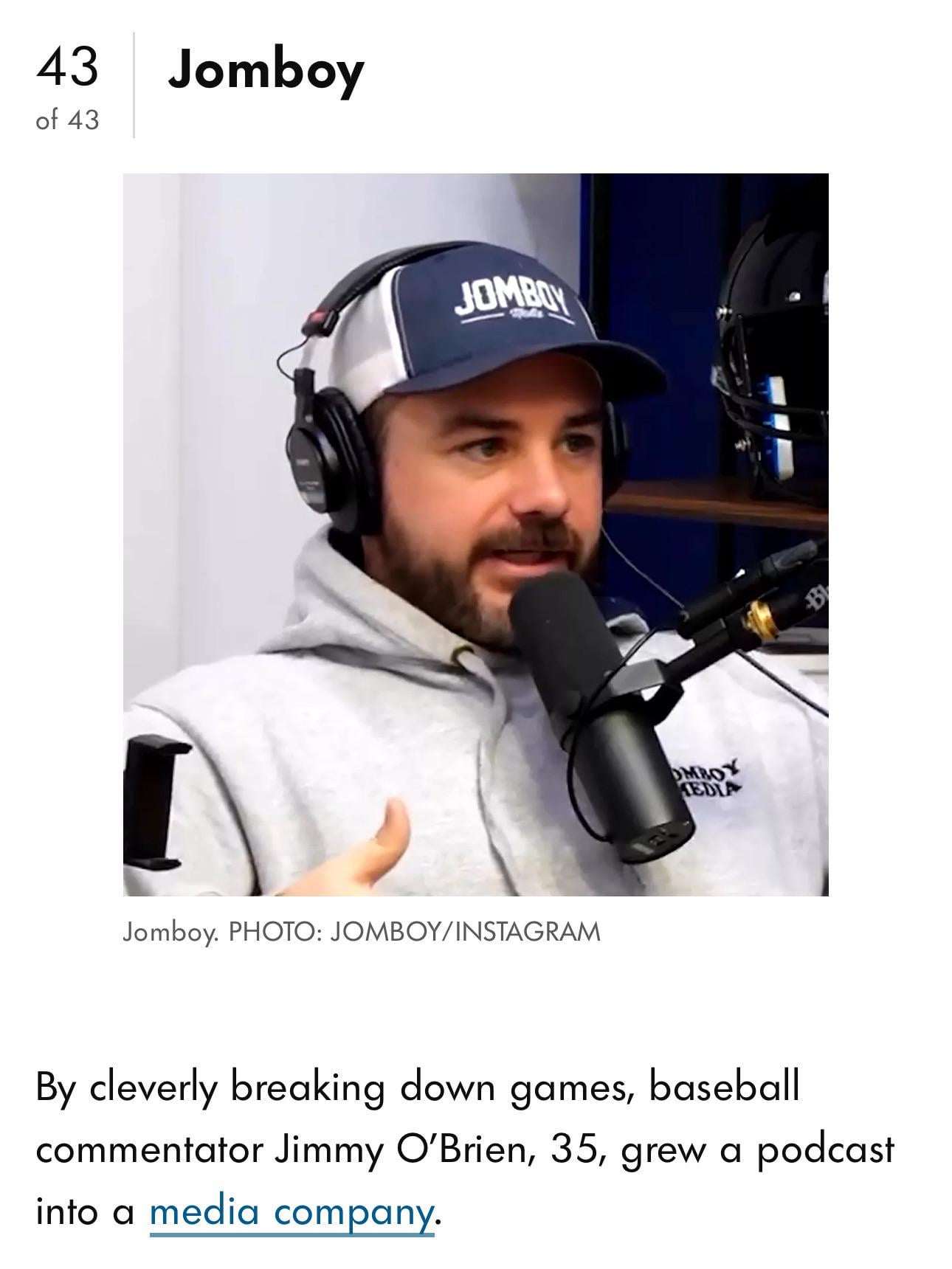 9. When all the other “independent” sports media companies basically abandoned baseball, just like the mainstream ones, Jomboy stepped up and kept it relevant online. I don’t think his role in supporting the sport can be overstated.