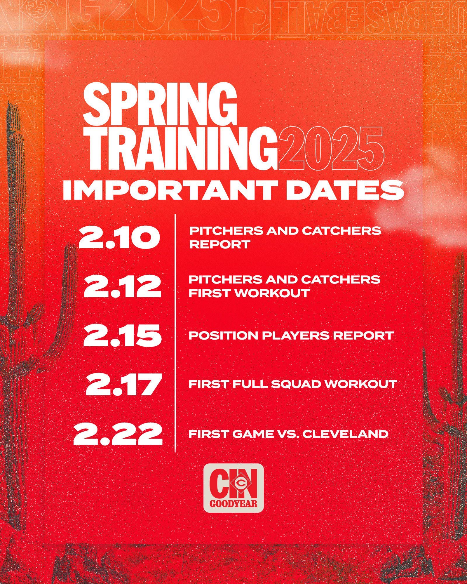 [Reds] Pitchers and Catchers report on 2/10. First Spring Training game on 2/22. 1 comment [__](https://media.wkyc.com/assets/WKYC/images/ccf61152-0b01-4d1e-b933-eac6e267e4b1/ccf61152-0b01-4d1e-b933-eac6e267e4b1_1140x641.jpg) days until pitchers and catchers report Leave a ReplyYou must be logged in to post a comment.