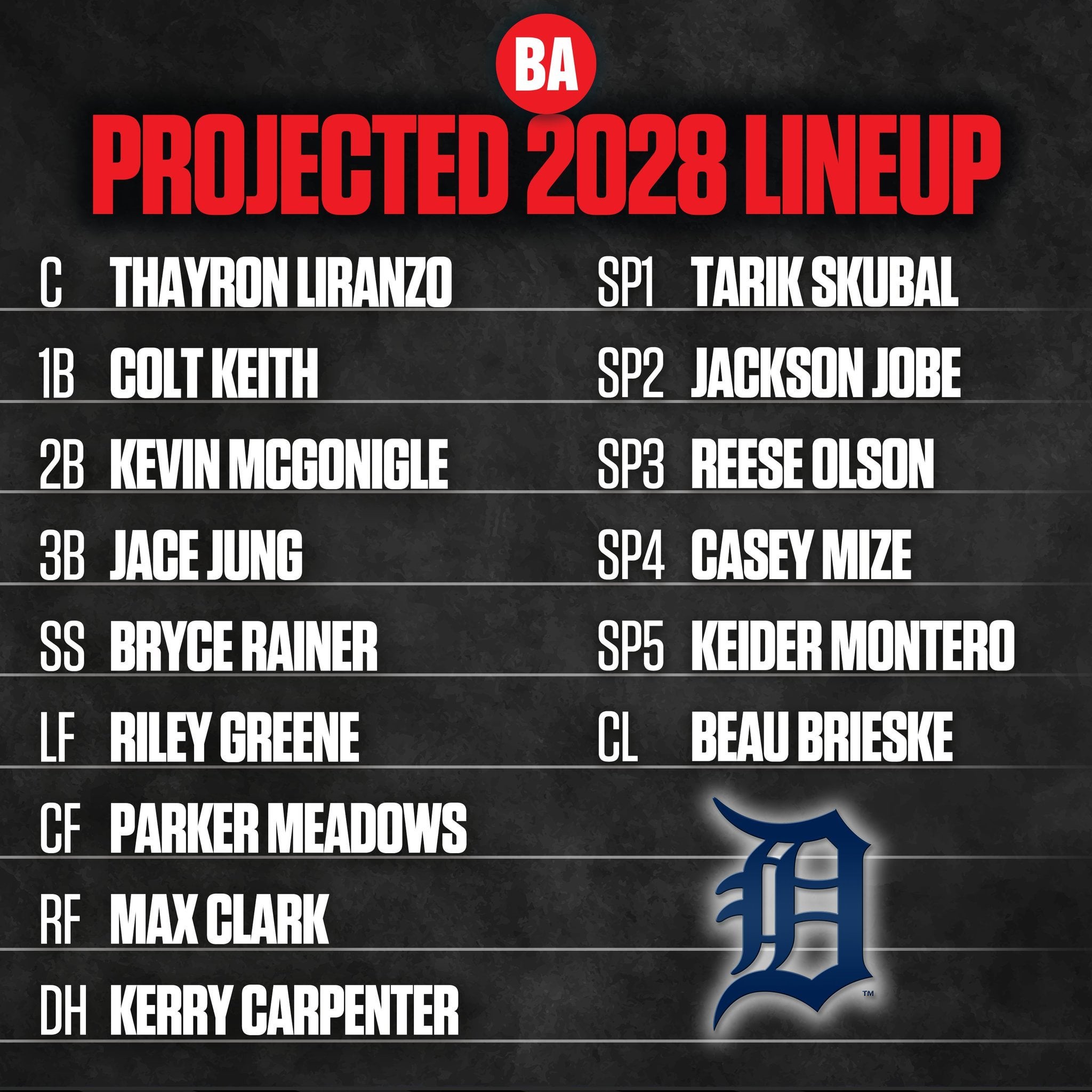 Baseball America’s projected 2028 Detroit Tigers lineup!🔥🔥🔥🔥🔥🔥🔥🔥