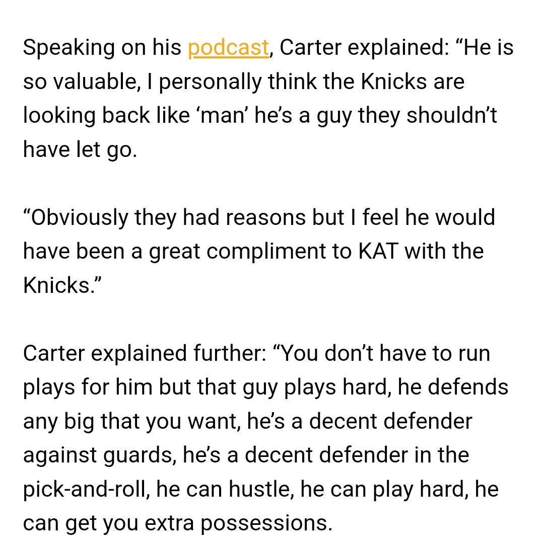 Besides the obvious that the Knicks financially couldn’t offer him more, the KAT move doesn’t happen if Hartenstein stays. The money doesn’t work and Randle is a better fit as the 4
