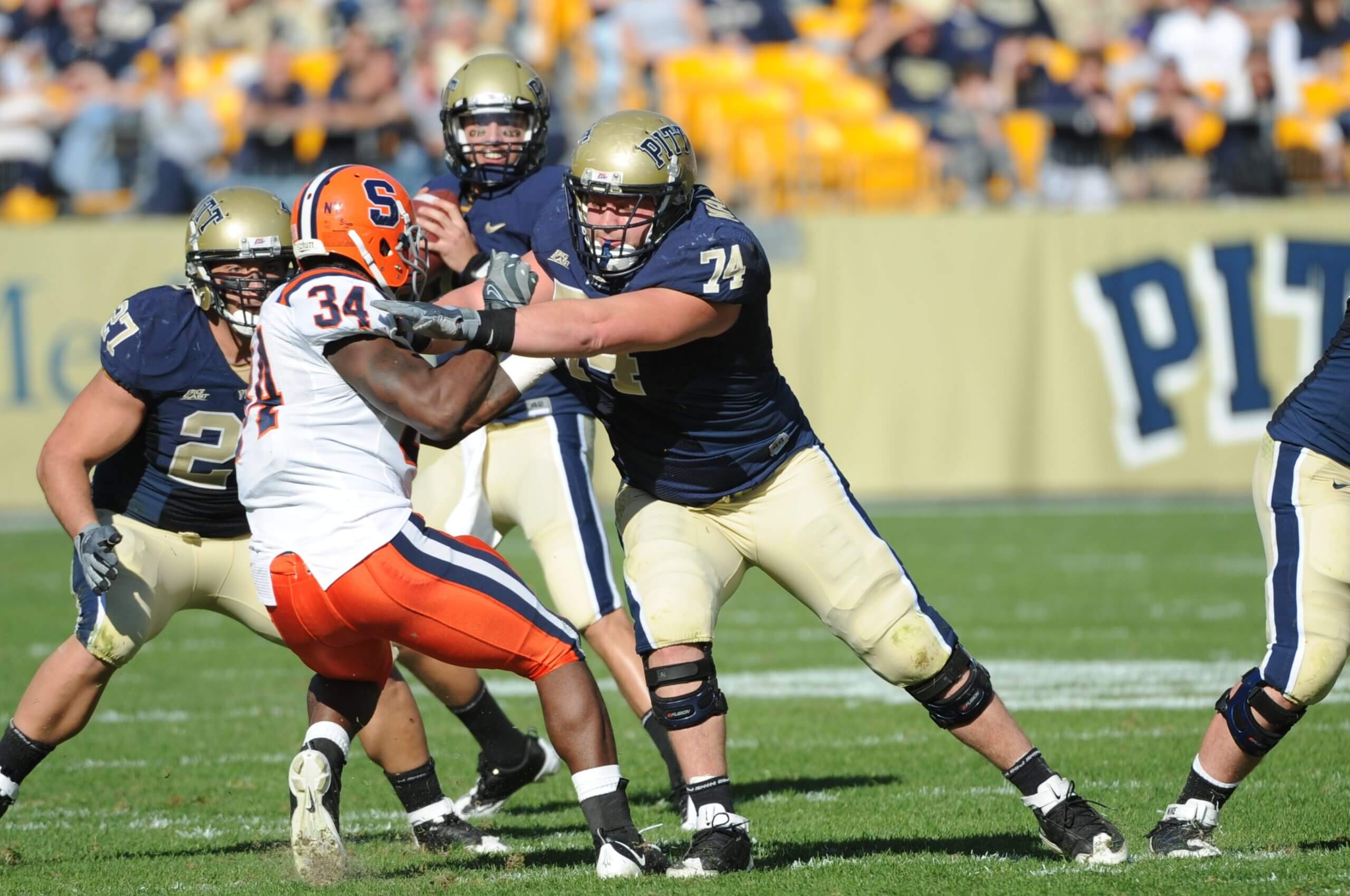 John Malecki (No. 74) playing against Syracuse in college. Photo: George Gojkovich / Getty Images