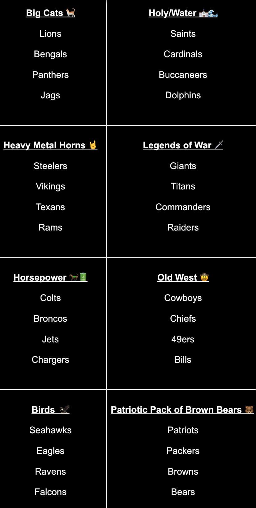 I liked the post from u/NascarEd on this so thought I’d build off that. Not sure how you sort them into two conferences though…
