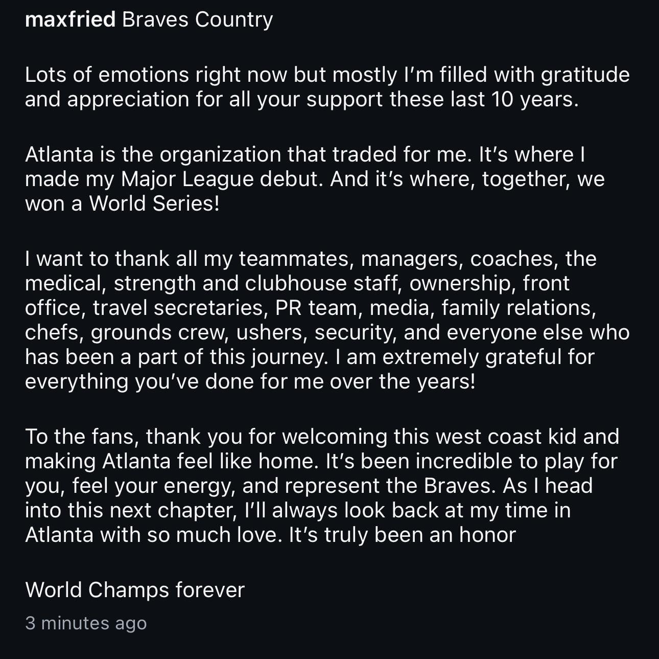 Love you Max. Your signed WS ball will always have a spot on my shelf.