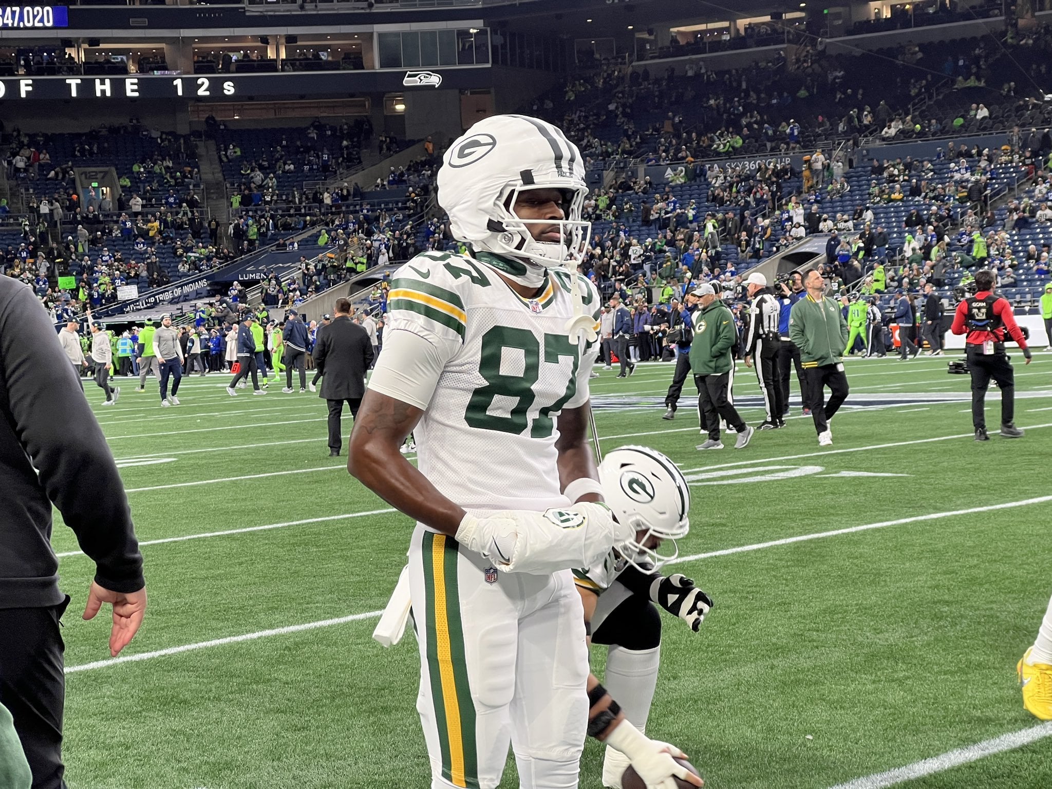 Romeo Doubs is wearing a Guardian Cap as he returns from concussion protocol