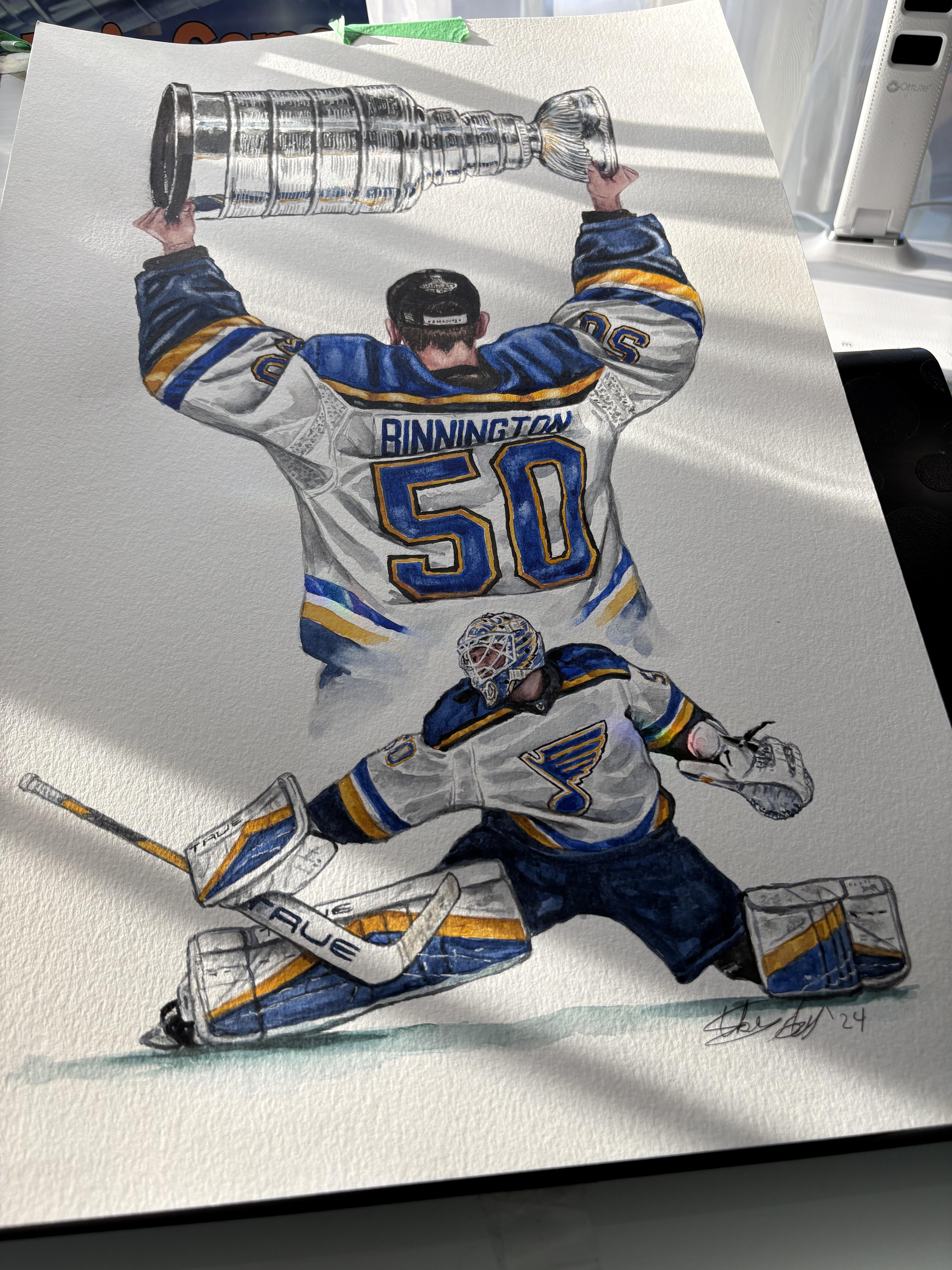 As requested by my Blues fans, Here’s my latest watercolour painting of Jordan Binnington.
