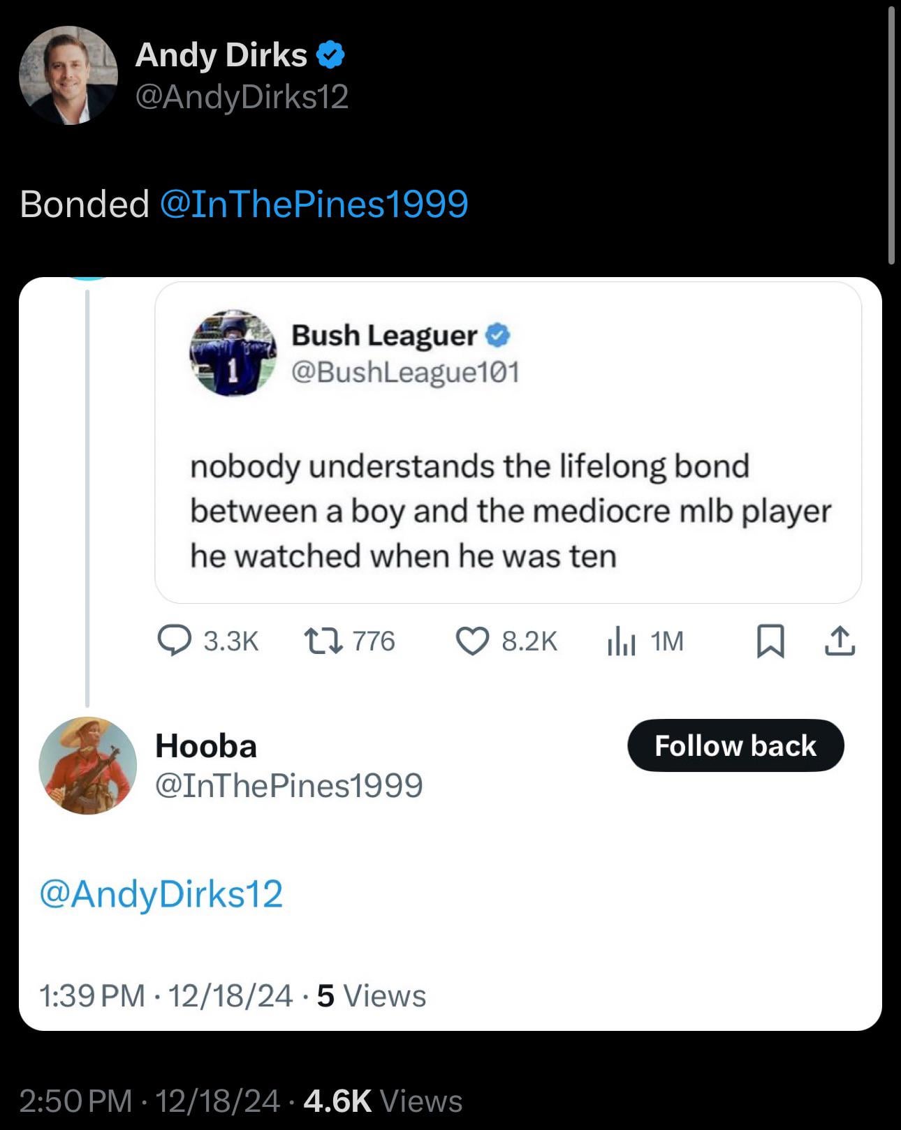 My last memory with my great uncle was shit talking over Andy Dirks because I was like 12 and I loved him so much and he didn’t lmfaooooo this hits different for me.