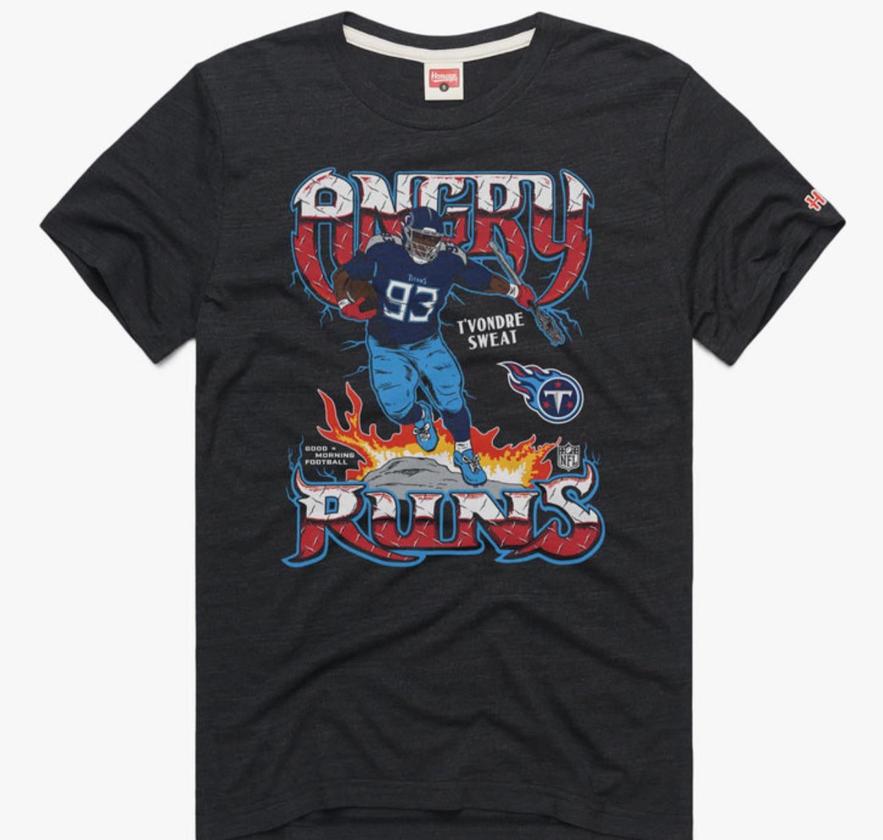 https://www.homage.com/products/angry-runs-2024-titans-tvondre-sweat 3 comments Watch out, people in this sub like to cry about “softness”, I hope these shirts are crisp and itchy Since Henry left, Sweat is easily my favorite Titan. Love the shirt. 40$ for a fucking t shirt… Leave a ReplyYou must be logged in to post a comment.