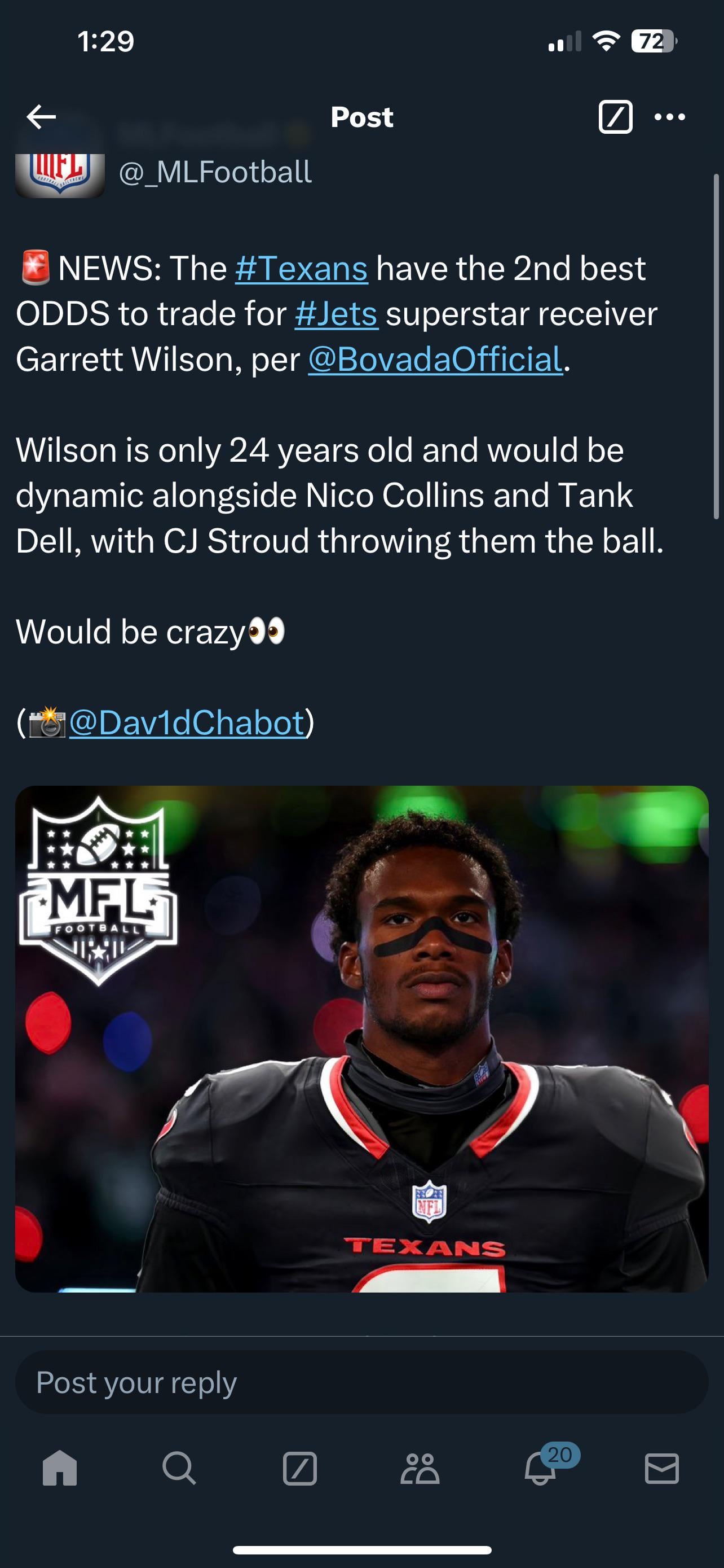Like IF GW strongarms his way out and the Jets have zero leverage (unlikely, but still, jets) and we can get him for a bargain (again unlikely) AND the Texans don’t want to bring Diggs back, then sure, absolutely. Nico, GW, Dell is a hell of a receiver room.