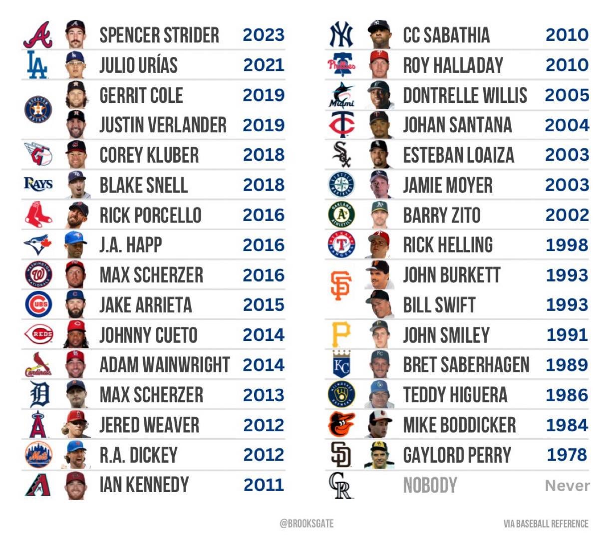 – Padres (1989, Davis | 2007, Peavy | 2023, Snell)