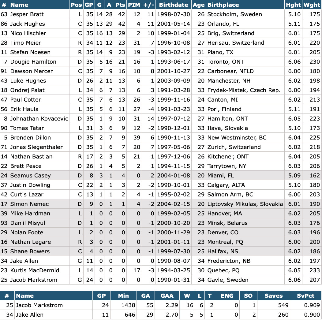 Hidden Stat: Jack and Luke Hughes combined for 19 shots on goal during Thursday’s loss to the Jackets, marking of the most prolific single-game shot outputs by a pair of brothers in NHL history (h/t Bryce Salvador.)