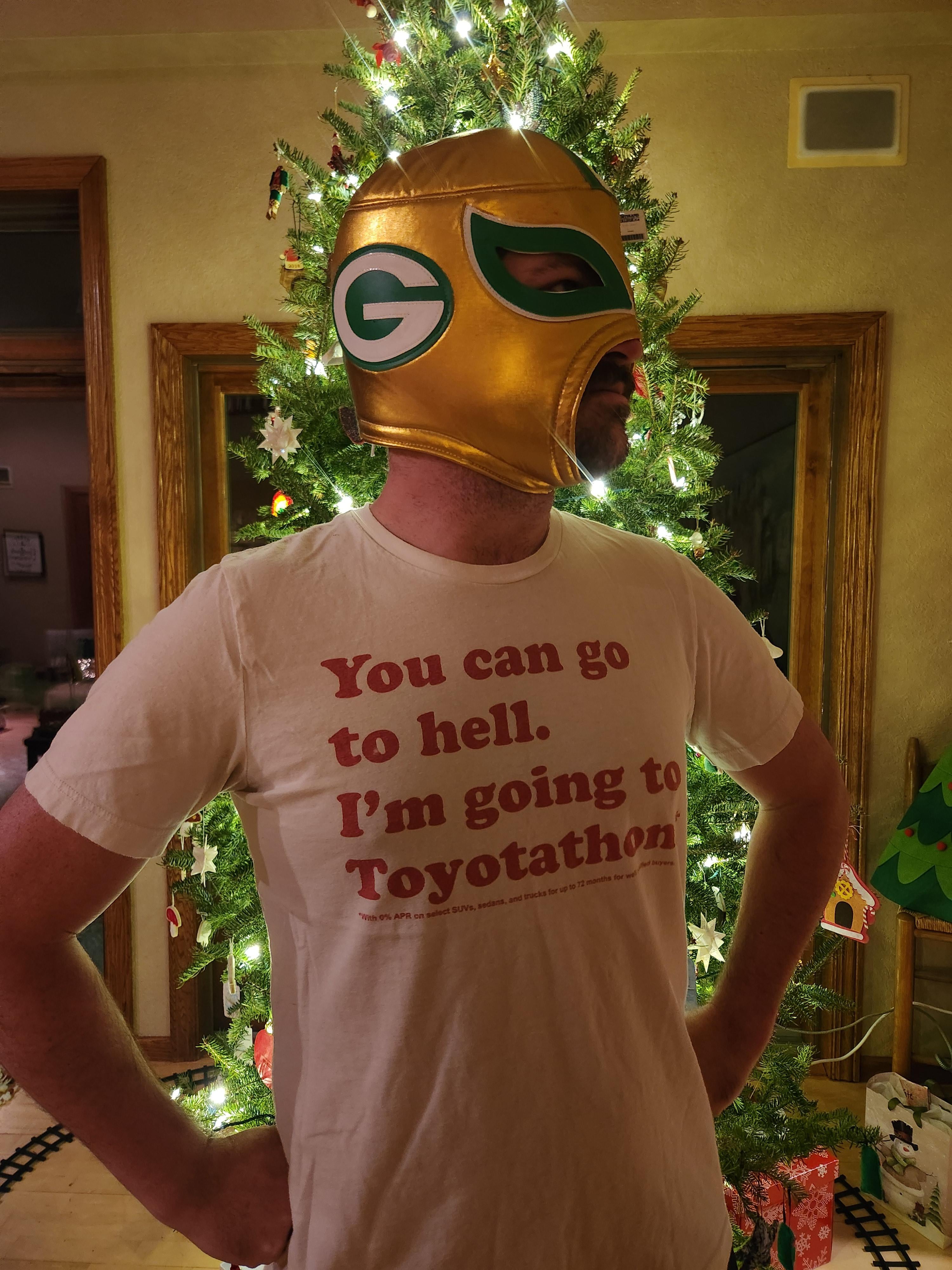 Had the shirt since forever, got the mask last week in Cozumel, and my piss has never been hotter. GPG 9 comments I need that mask… *books a trip to Cozumel* This is the only version of Santa Clause we are going to celebrate in my house from this day on. That shirt is beautiful Did you happen to go to Dick’s Dive while in Cozumel? Huge Packer bar. Were you by chance on the mariner of the seas for the Royal Caribbean cruise😠I legit thought it had a Christmas tree mohawk for a minute I’m ootl on the toyotathon thing. What’d I miss Lol. Mad lad. When I was in Cozumel, I saw a Packers sombrero and poncho set. I regret not emptying out my suitcase in order to have enough room to bring it back. Leave a ReplyYou must be logged in to post a comment.
