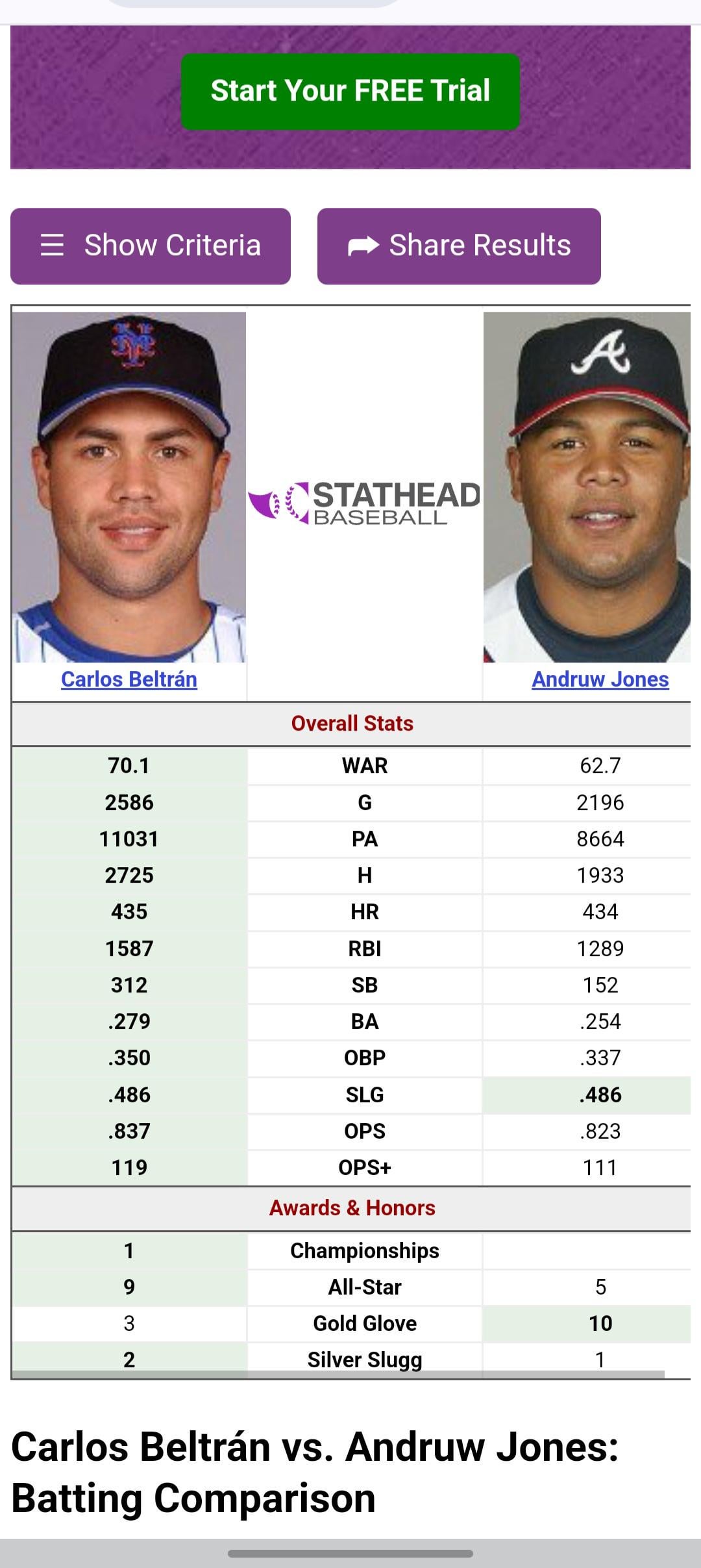 Jones was probably the best fielding center fielder of my life. He was one of the best ever. And he could hit well, as well. Beltran was very good, but not Andruw Jones good in the outfield. And he was an appreciably better batter, but not as overwhelming as the full carer comp shows.