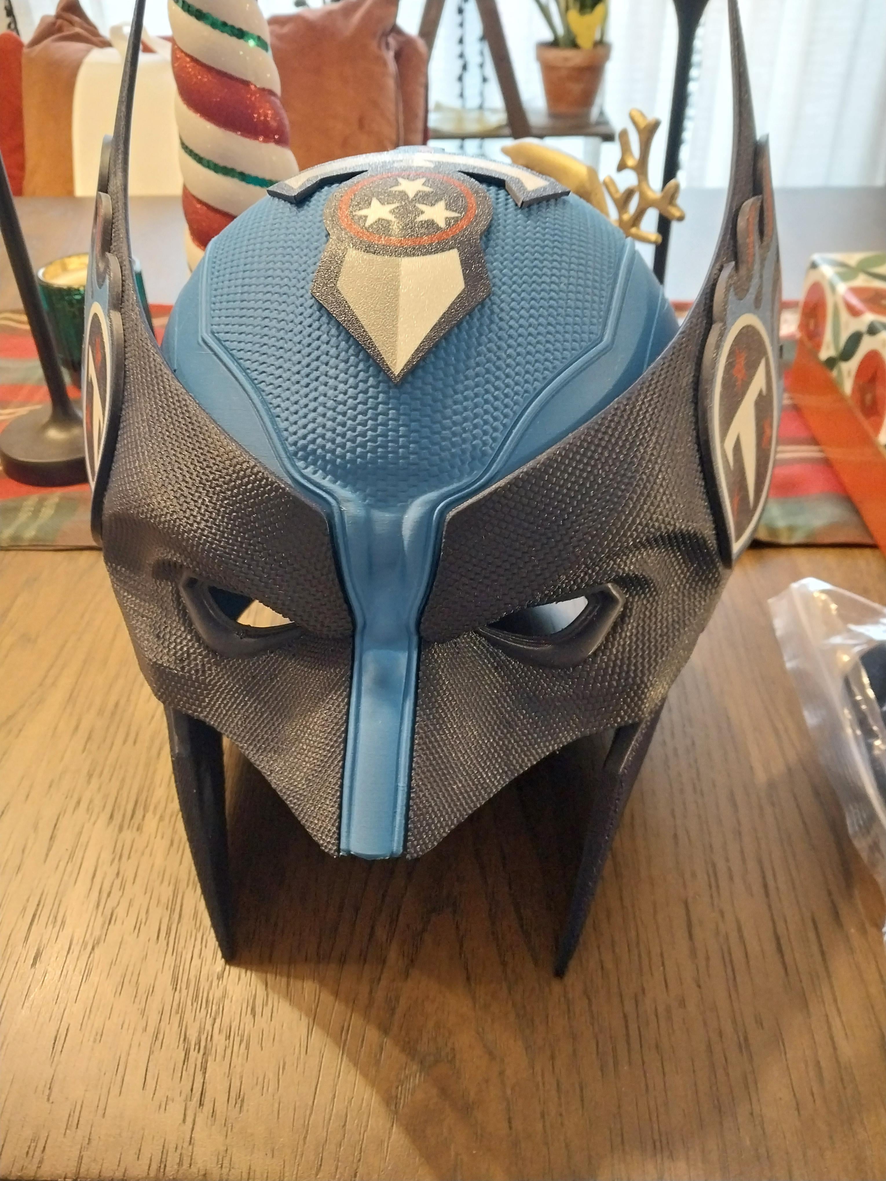 Dope Wolverine style mask, all 3d printed and the dark blue mask pieces come off as well. TitanUp! Merry Xmas and Happy Holidays!