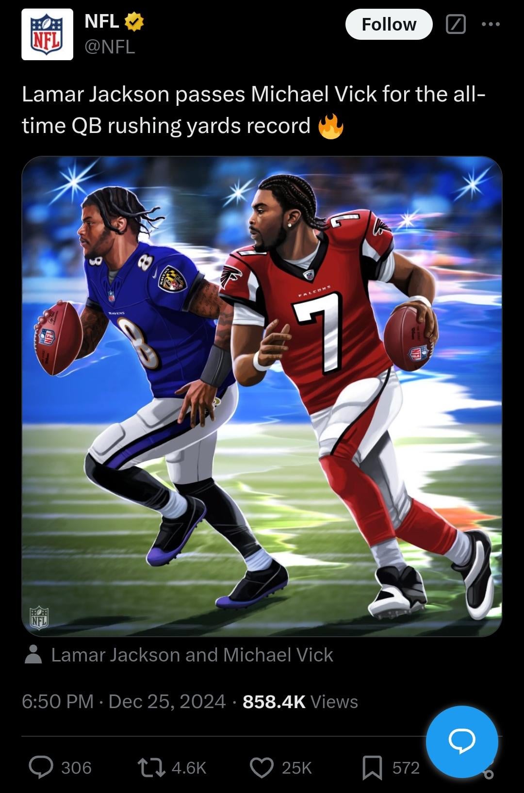 Vick and Jackson are finesse runners. Cam was a monster. Cam was like if Derrick Henry was also a QB