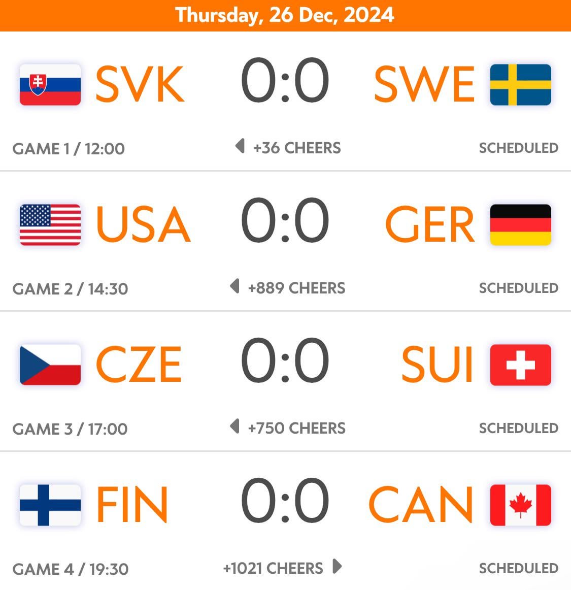 USA plays at 2:30. All flyers prospects at tournament play at 7:30. Ruohonen(Fin) Bonk,Bjarnson, Jett(Can). 3 comments Anyone know if WJC is streaming anywhere else in the US besides NHL network? Are times EST? I’m guessing cheers has something to do with the favorite but does anyone know what it actually means? Leave a ReplyYou must be logged in to post a comment.