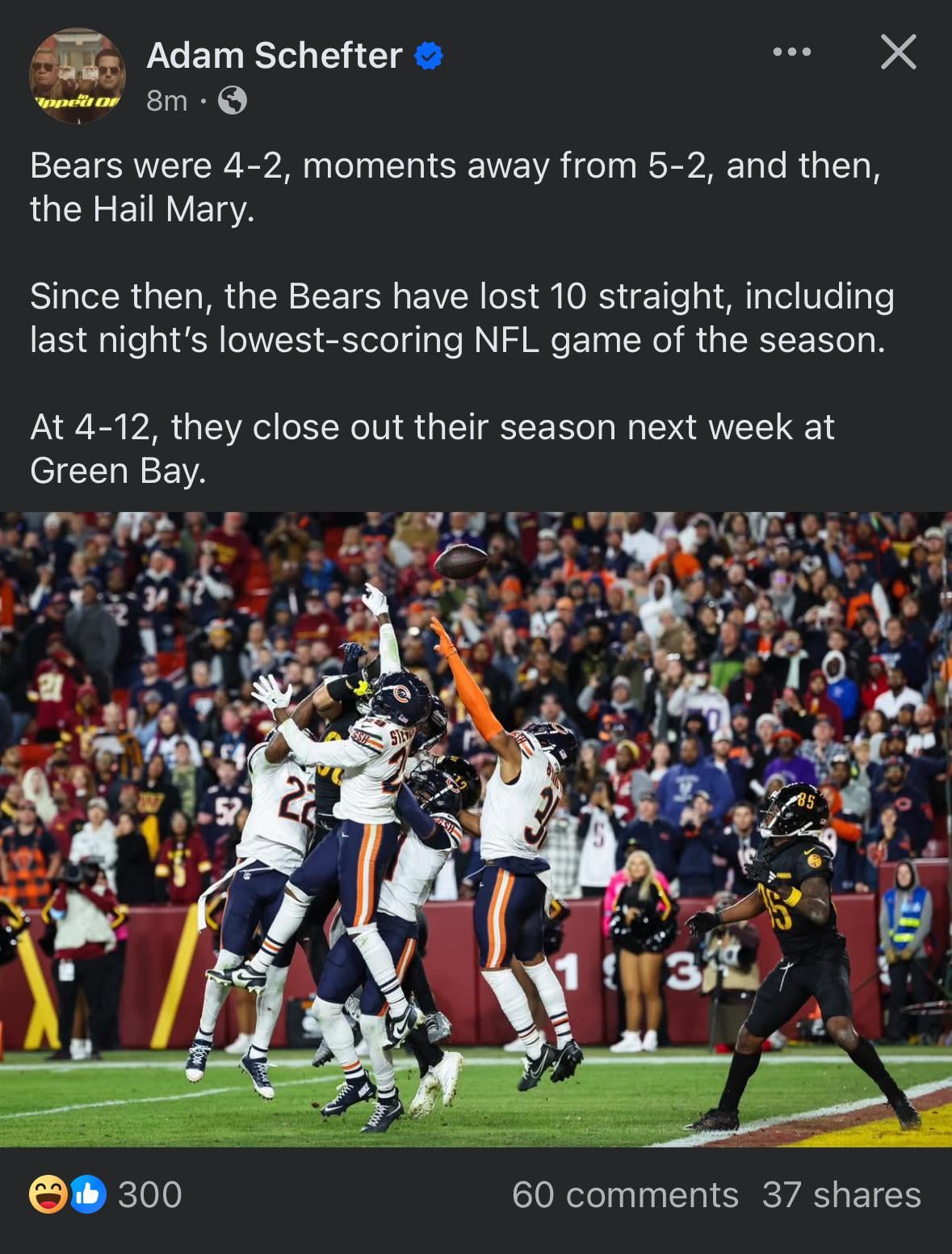 7. The good news for them is they get a new coach next year and a high draft pick so if they hire the right guy, they can really start to build around Caleb Williams.