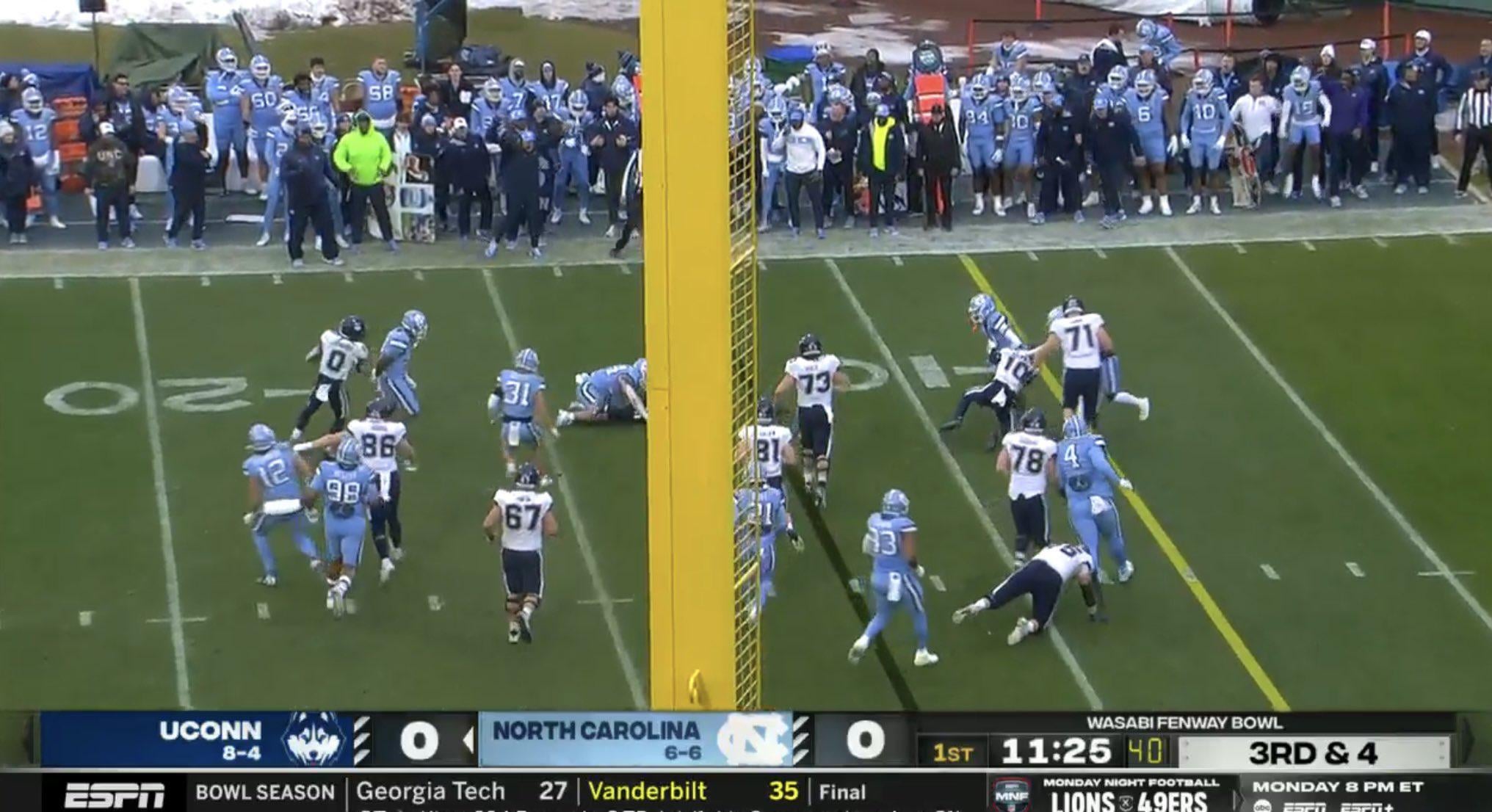 Pesky’s Pole is obstructing the camera at the Fenway Bowl